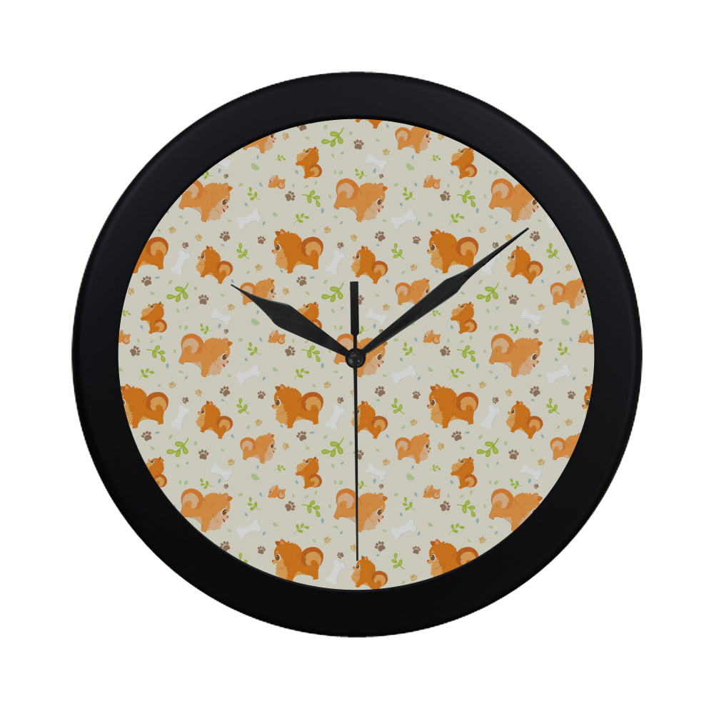 Cute brown pomeranian paw leave bone pattern Elegant Black Wall Clock is a uniqued design and limited item. It made to order, hand printed, and sewn with love in our factory.