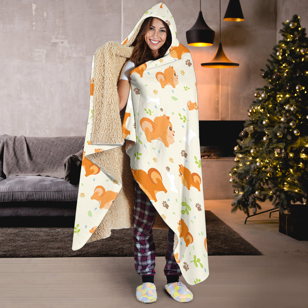 Cute brown pomeranian paw leave bone pattern Hooded Blanket are custom-made-to-order and handcrafted to the highest quality standards.