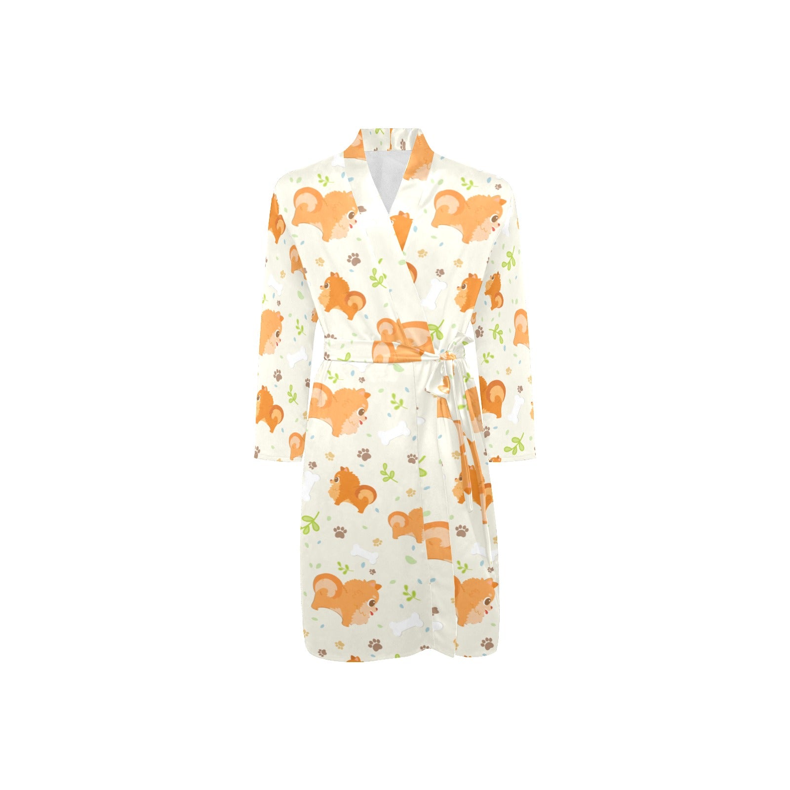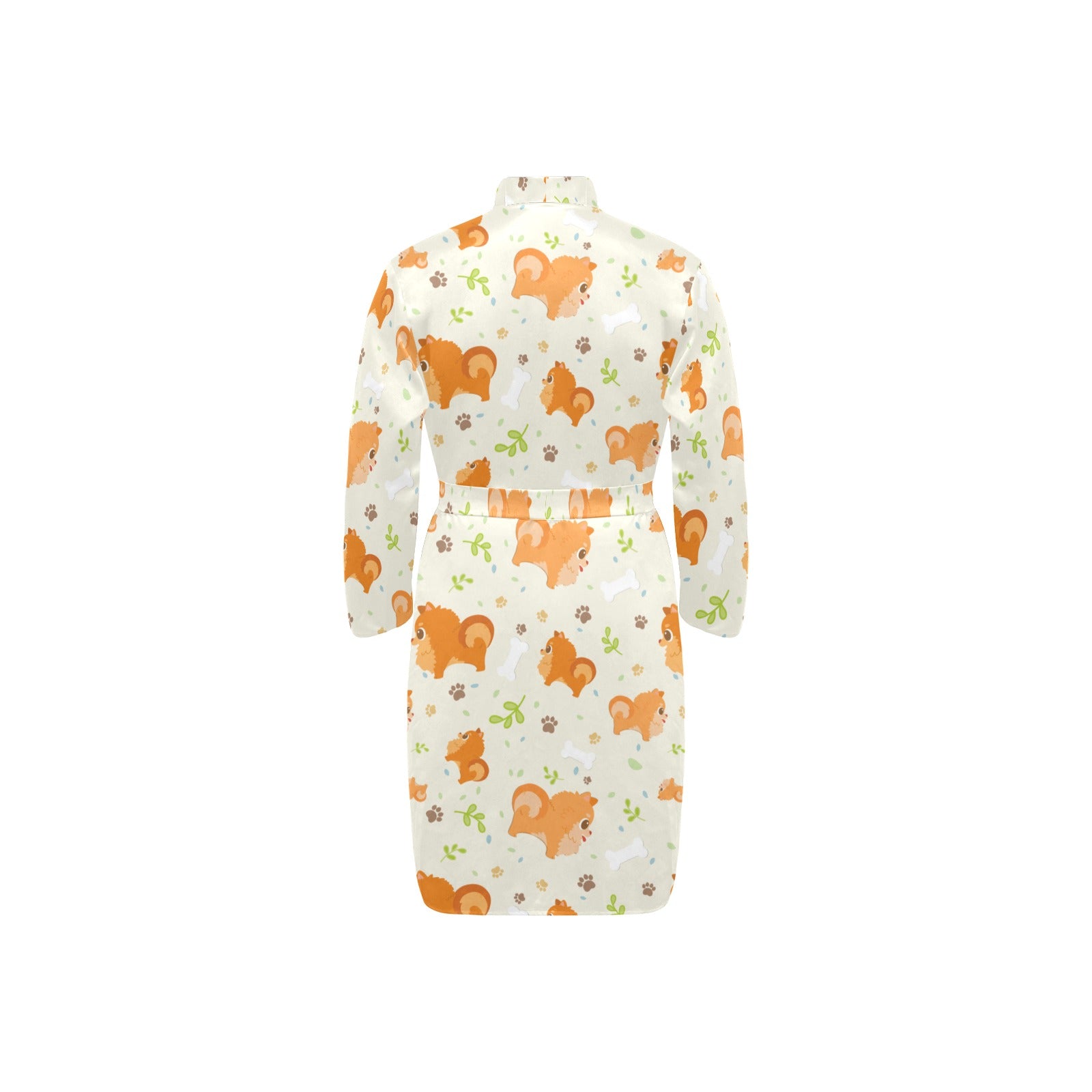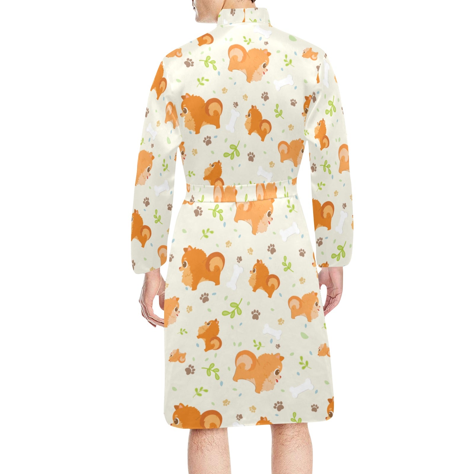 Cute brown pomeranian paw leave bone pattern Men's Long Sleeve Belted Night Robe
