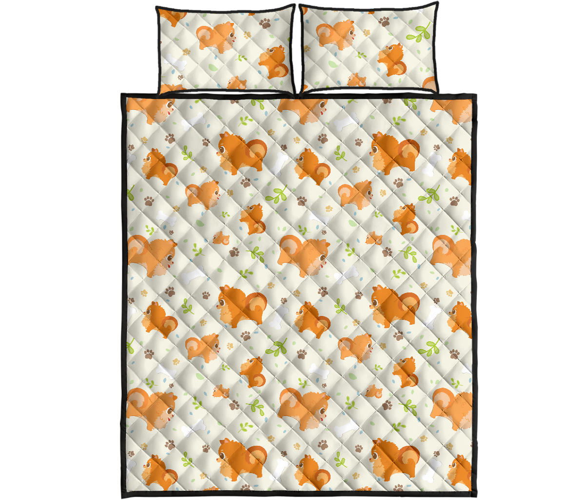 Cute brown pomeranian paw leave bone pattern Quilt Bed Set