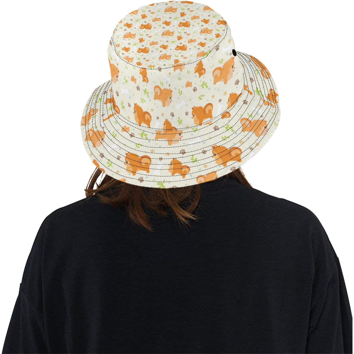Cute brown pomeranian paw leave bone pattern Unisex Bucket Hat