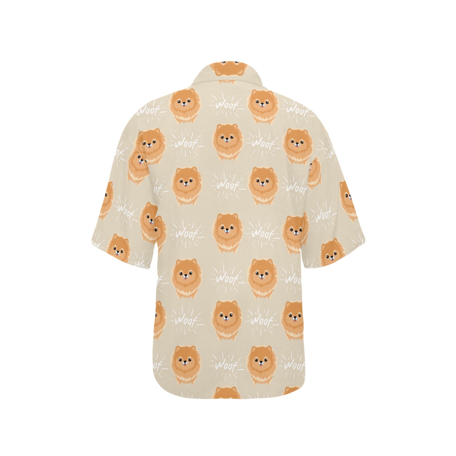 Cute brown pomeranian puppy on blue Women's All Over Print Hawaiian Shirt