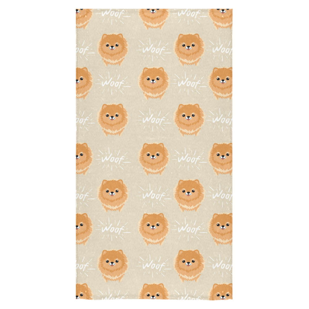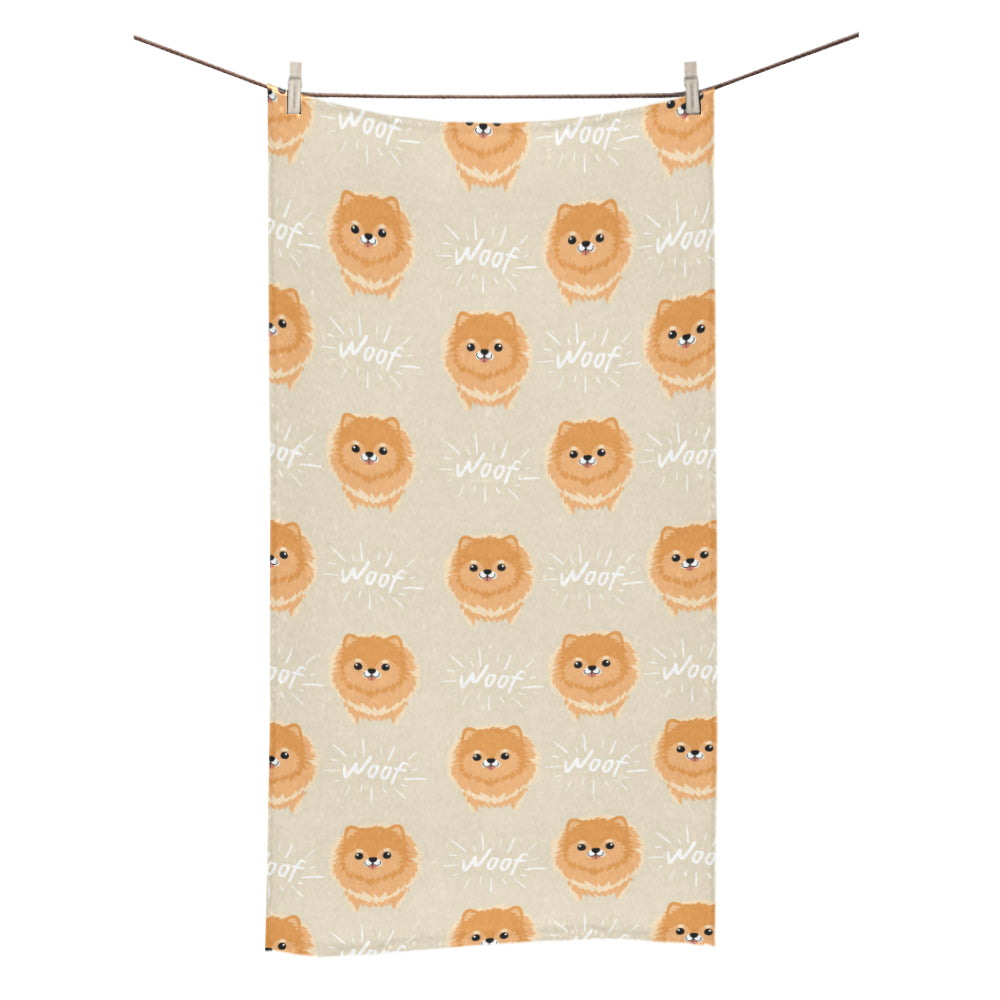 Cute brown pomeranian puppy on blue Bath Towel 30"x56" is a uniqued design and limited item. It made to order, hand printed, and sewn with love in our factory.