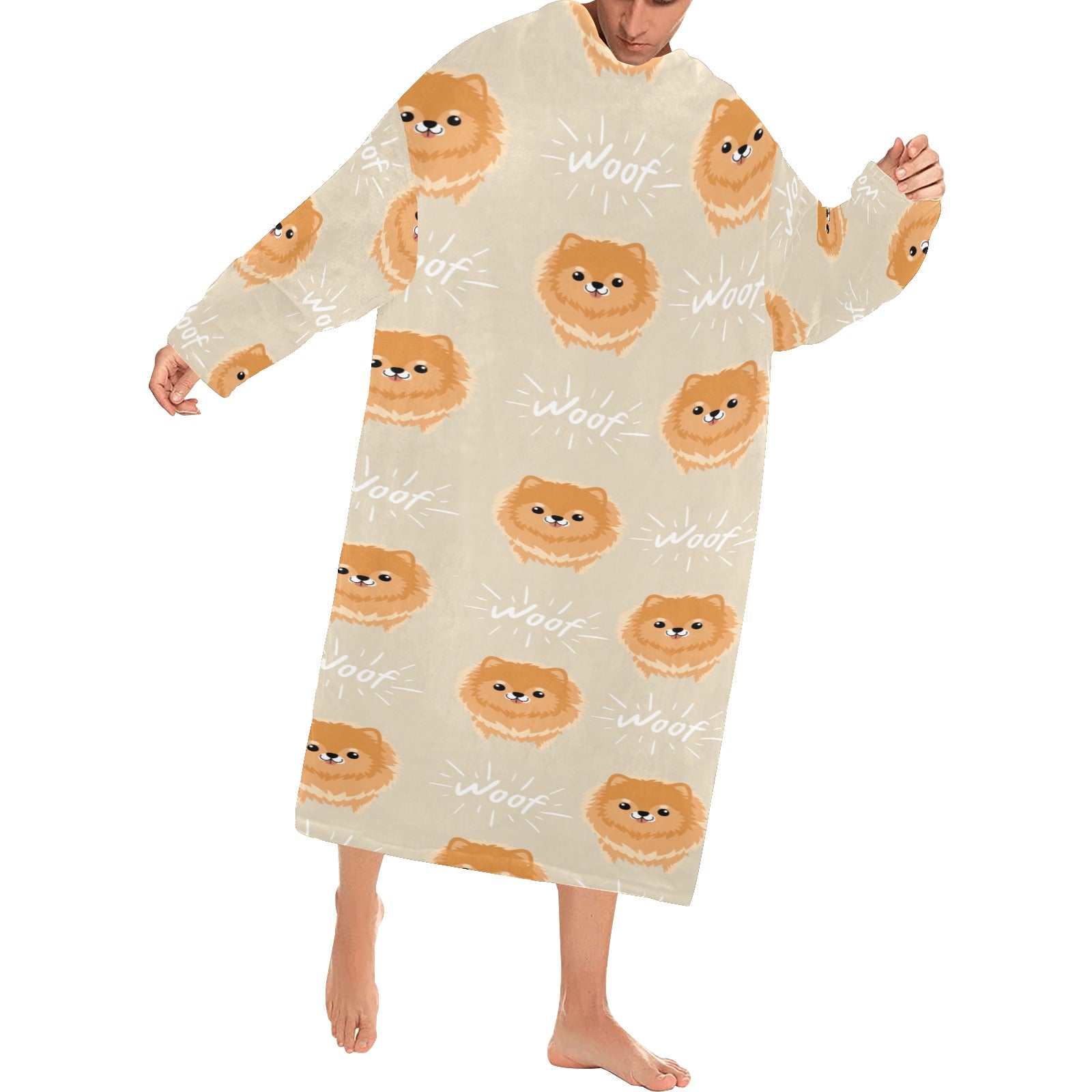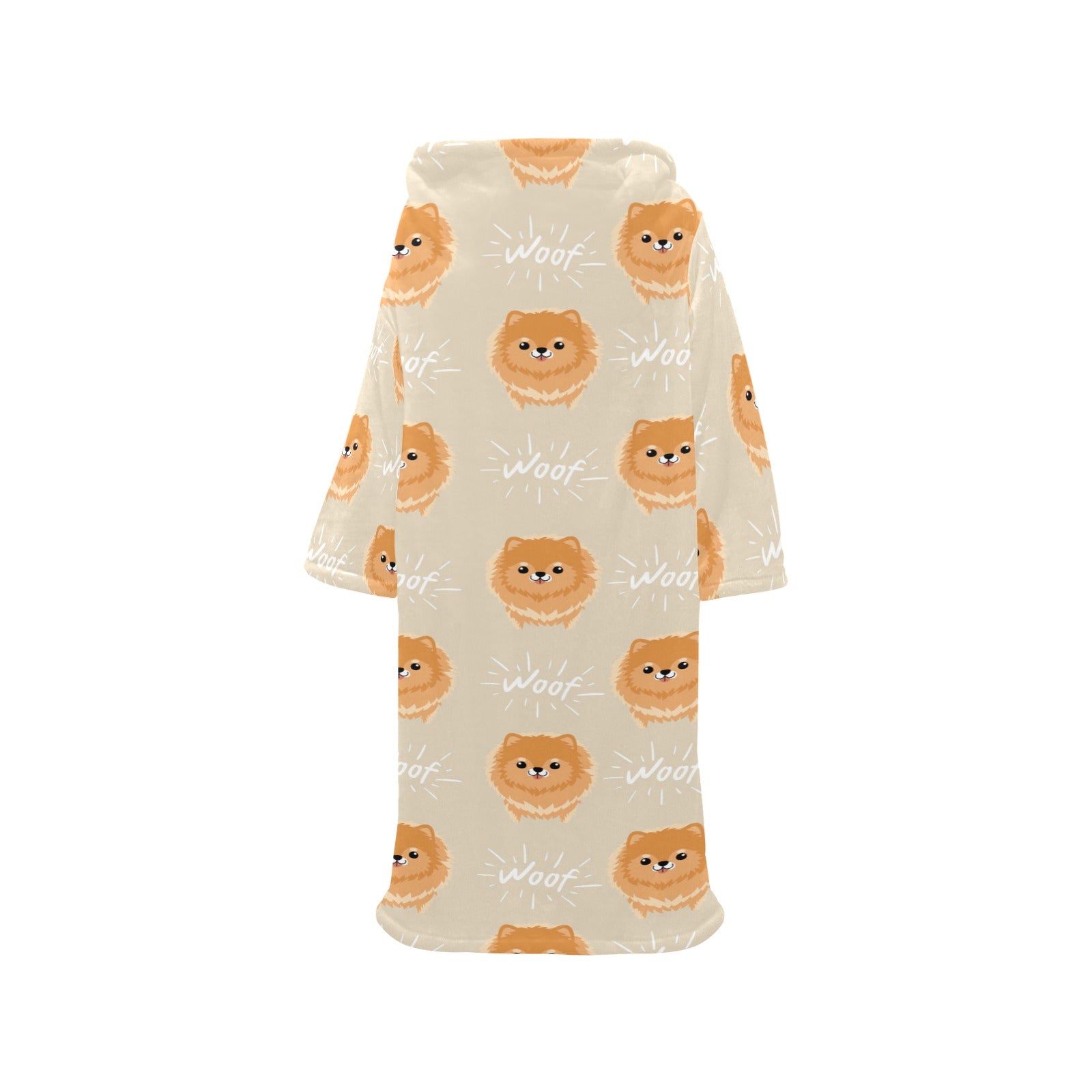 Cute brown pomeranian puppy on blue Blanket Robe with Sleeves