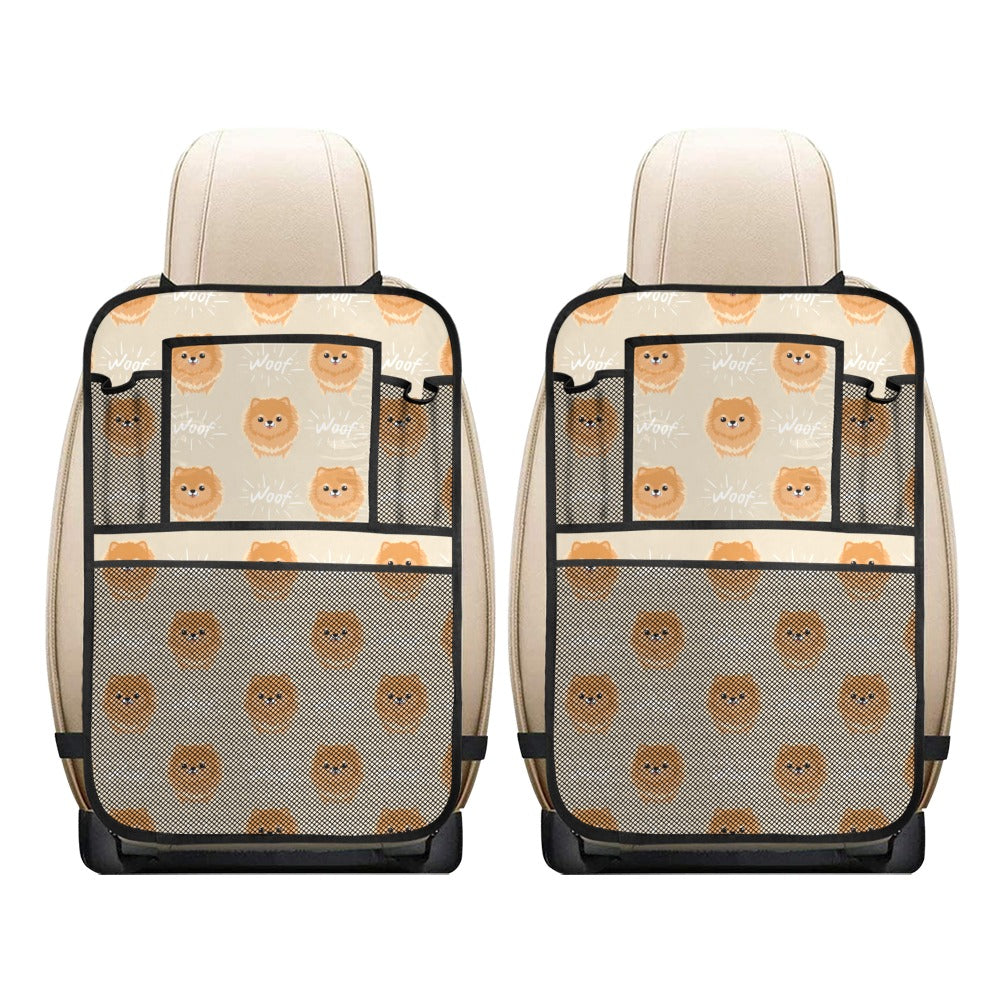 Cute brown pomeranian puppy on blue Car Seat Back Organizer