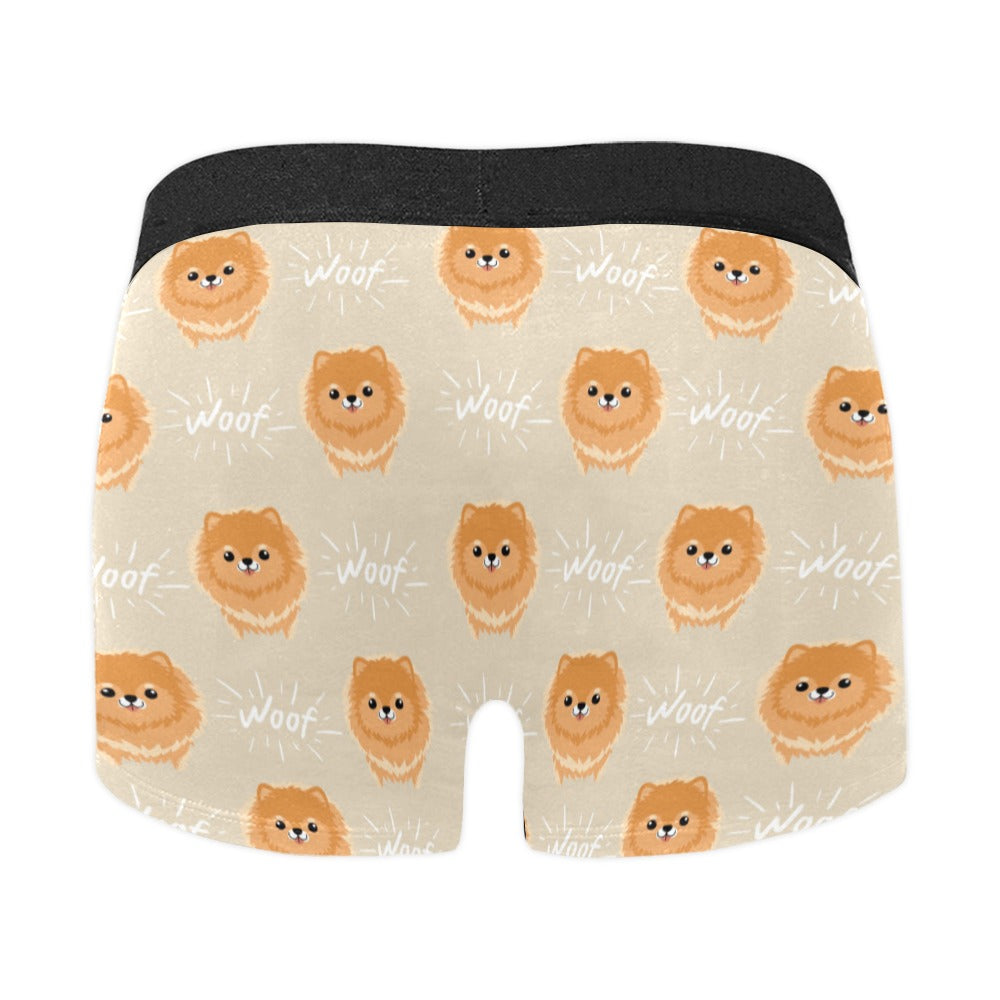 Cute brown pomeranian puppy on blue Men's All Over Print Boxer Briefs Men's Underwear