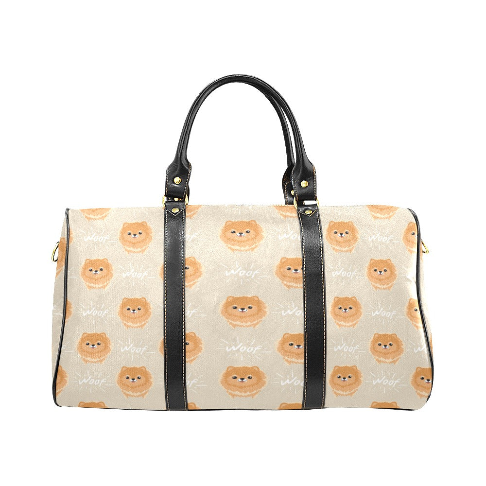 Cute brown pomeranian puppy on blue Travel Bag