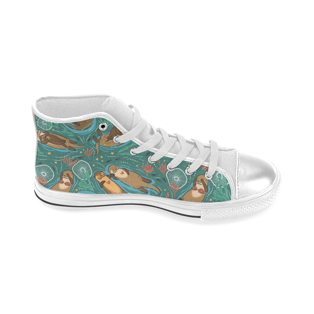 cute brown sea otters ornamental seaweed corals gr Women's High Top Canvas Shoes White