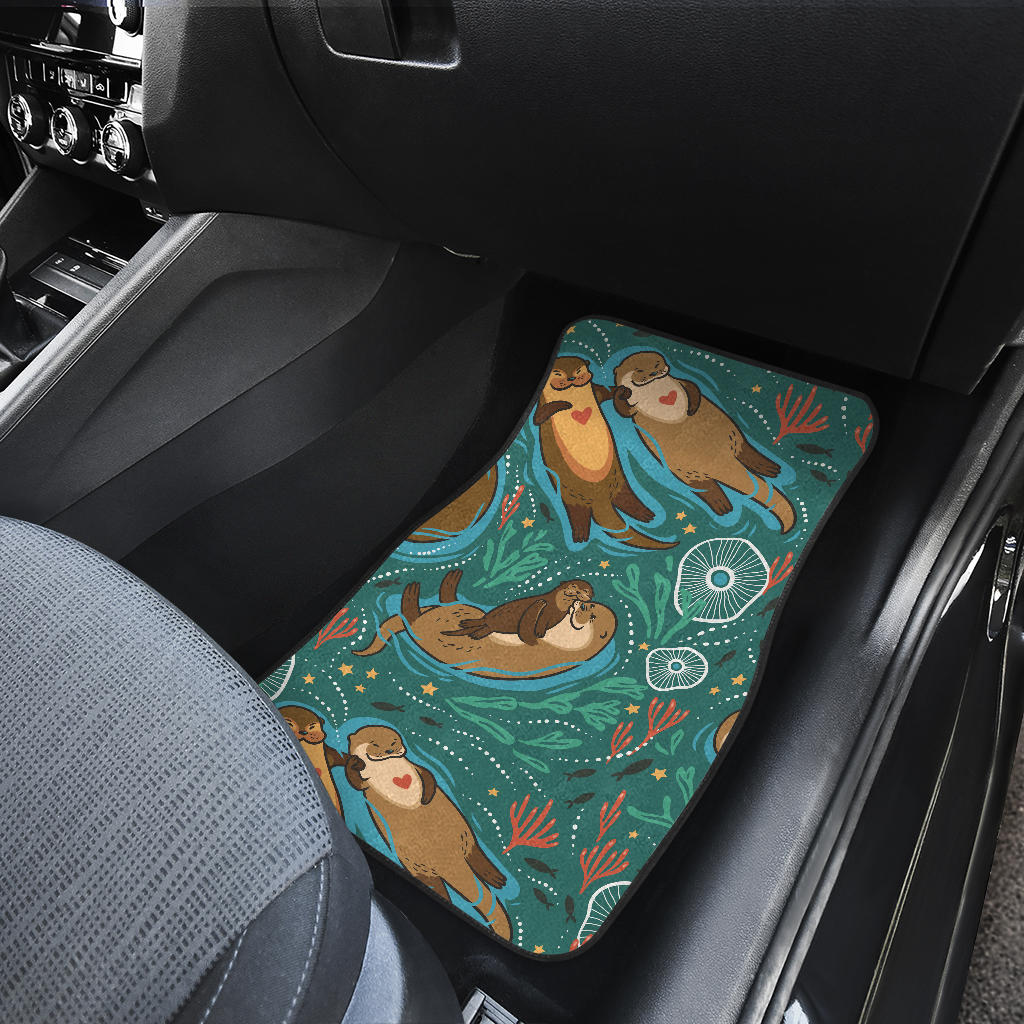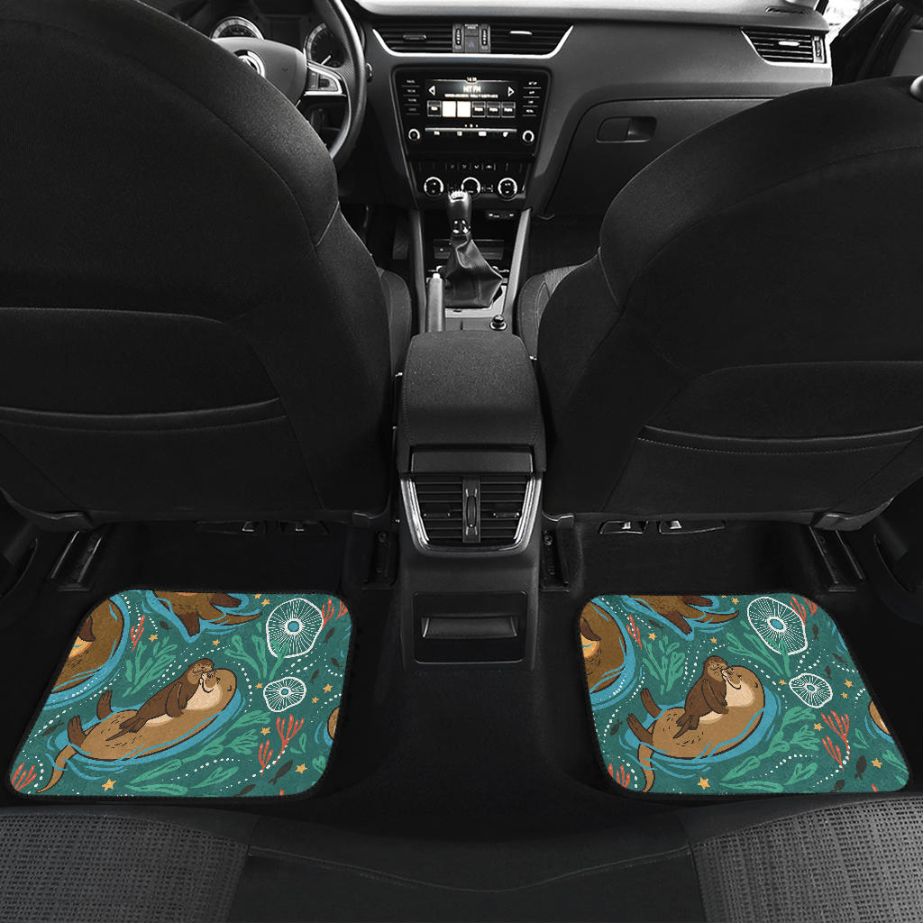 Cute Brown Sea Otters Ornamental Seaweed Corals Green Water Front And Back Car Mats