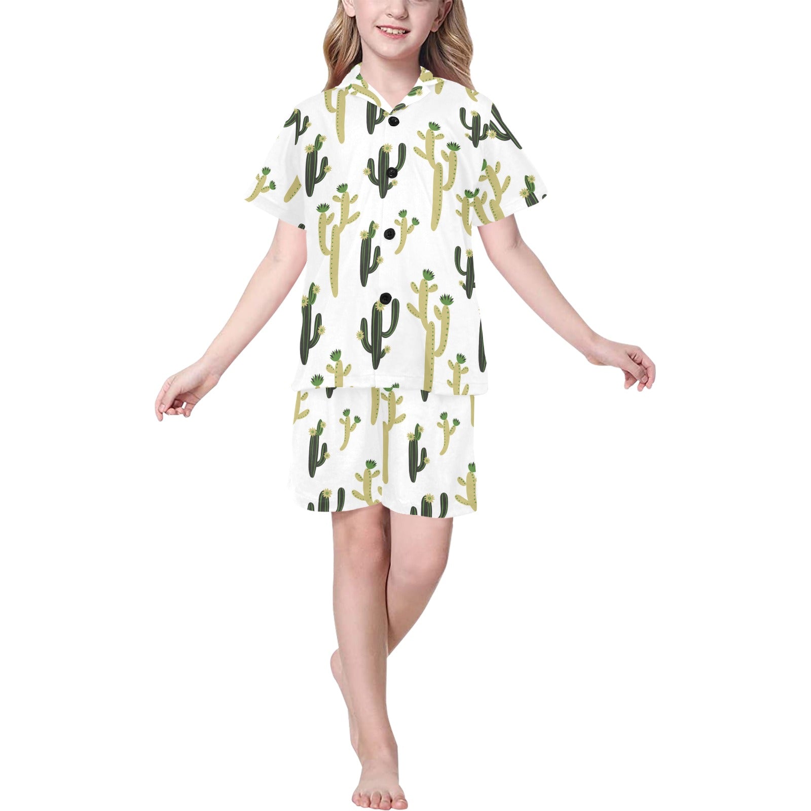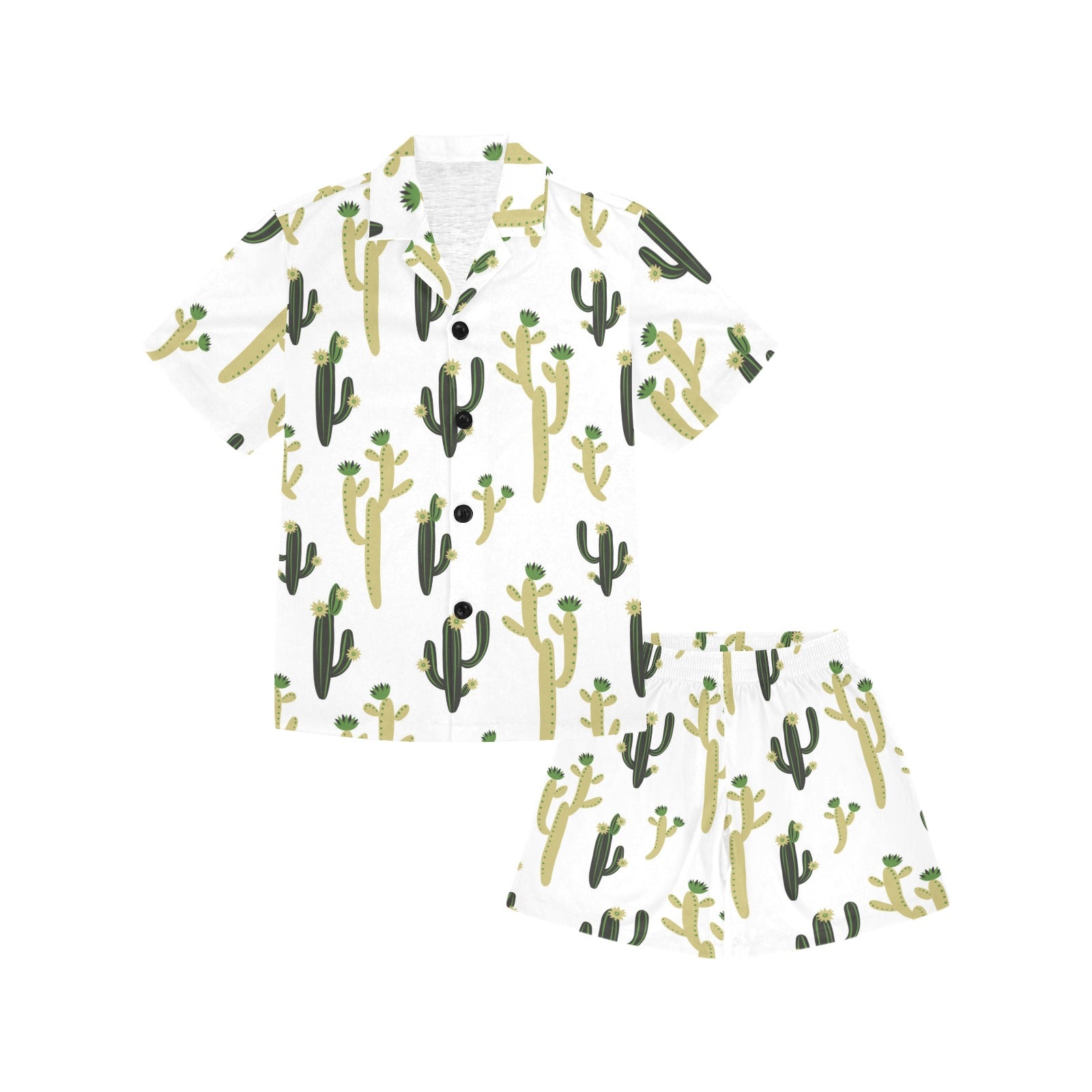 Cute cactus pattern Kids' Boys' Girls' V-Neck Short Pajama Set