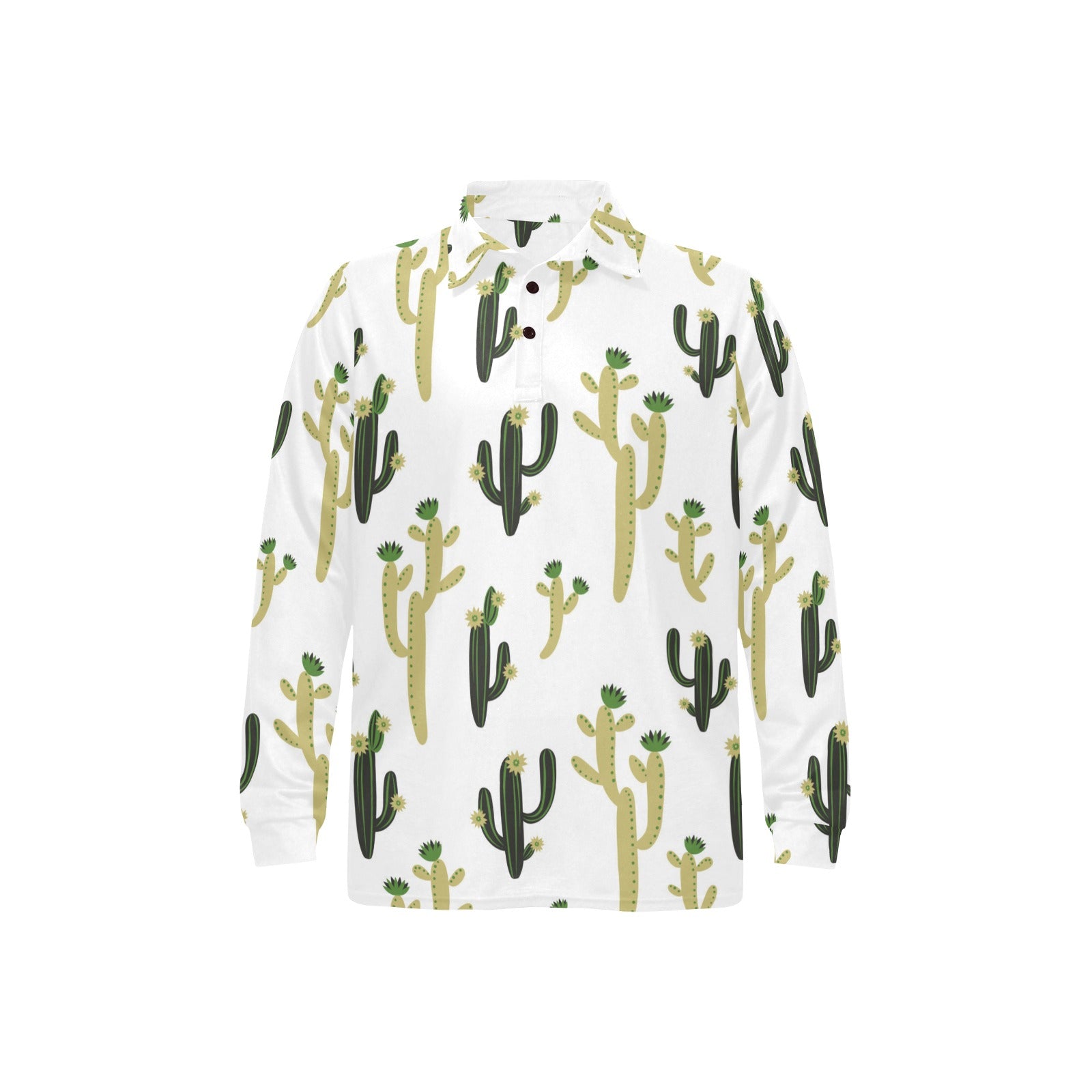 Cute cactus pattern Men's Long Sleeve Polo Shirt