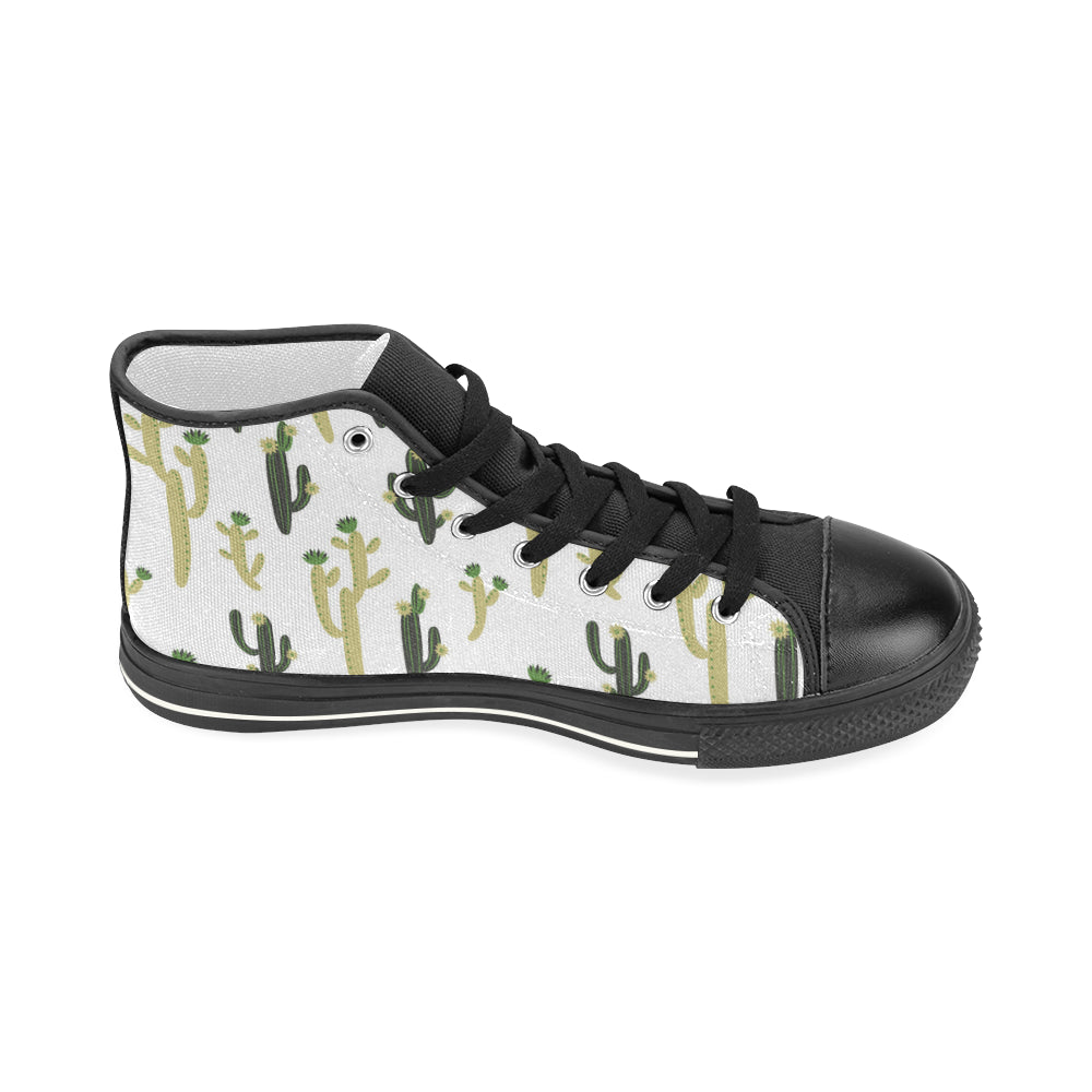 Cute cactus pattern Women's High Top Canvas Shoes Black