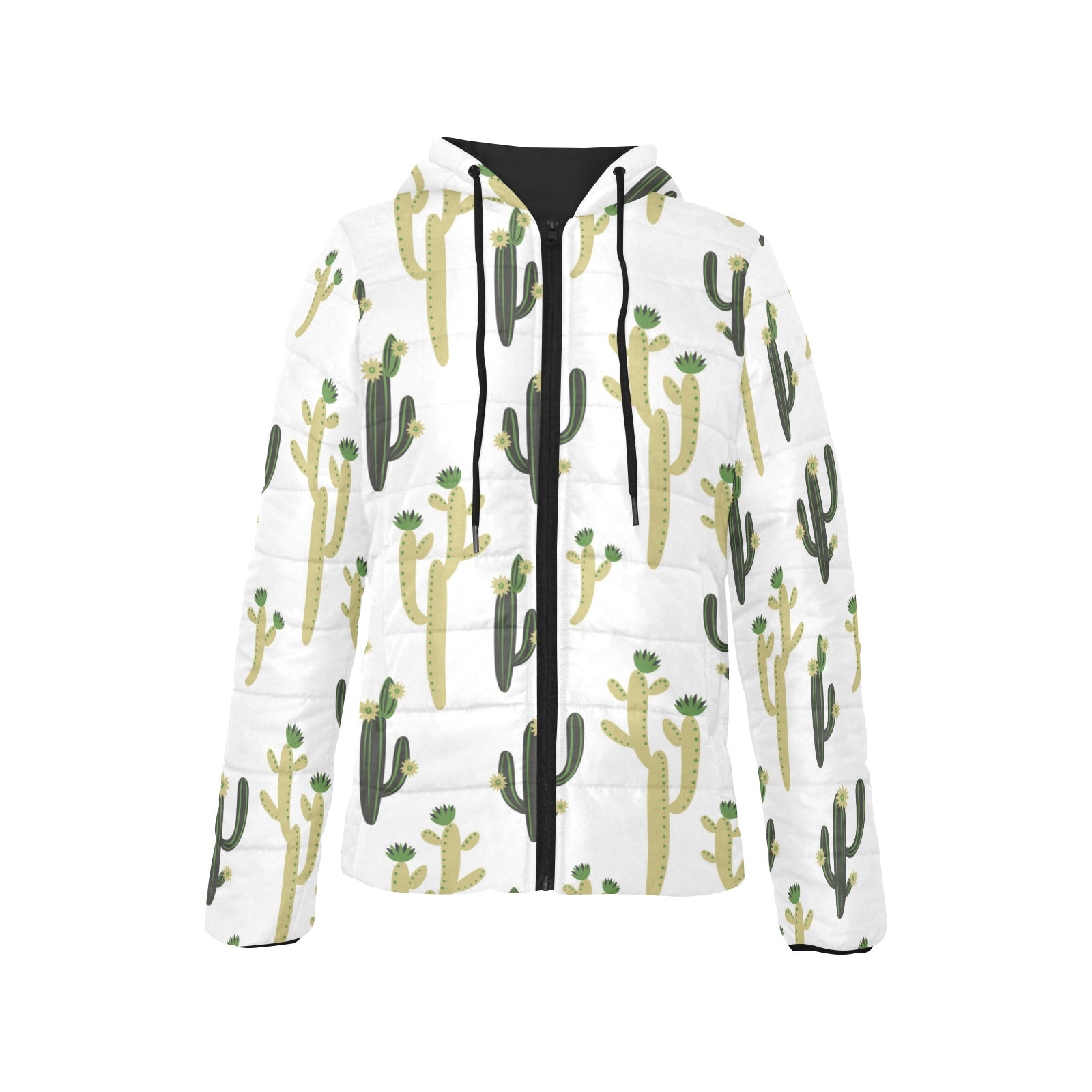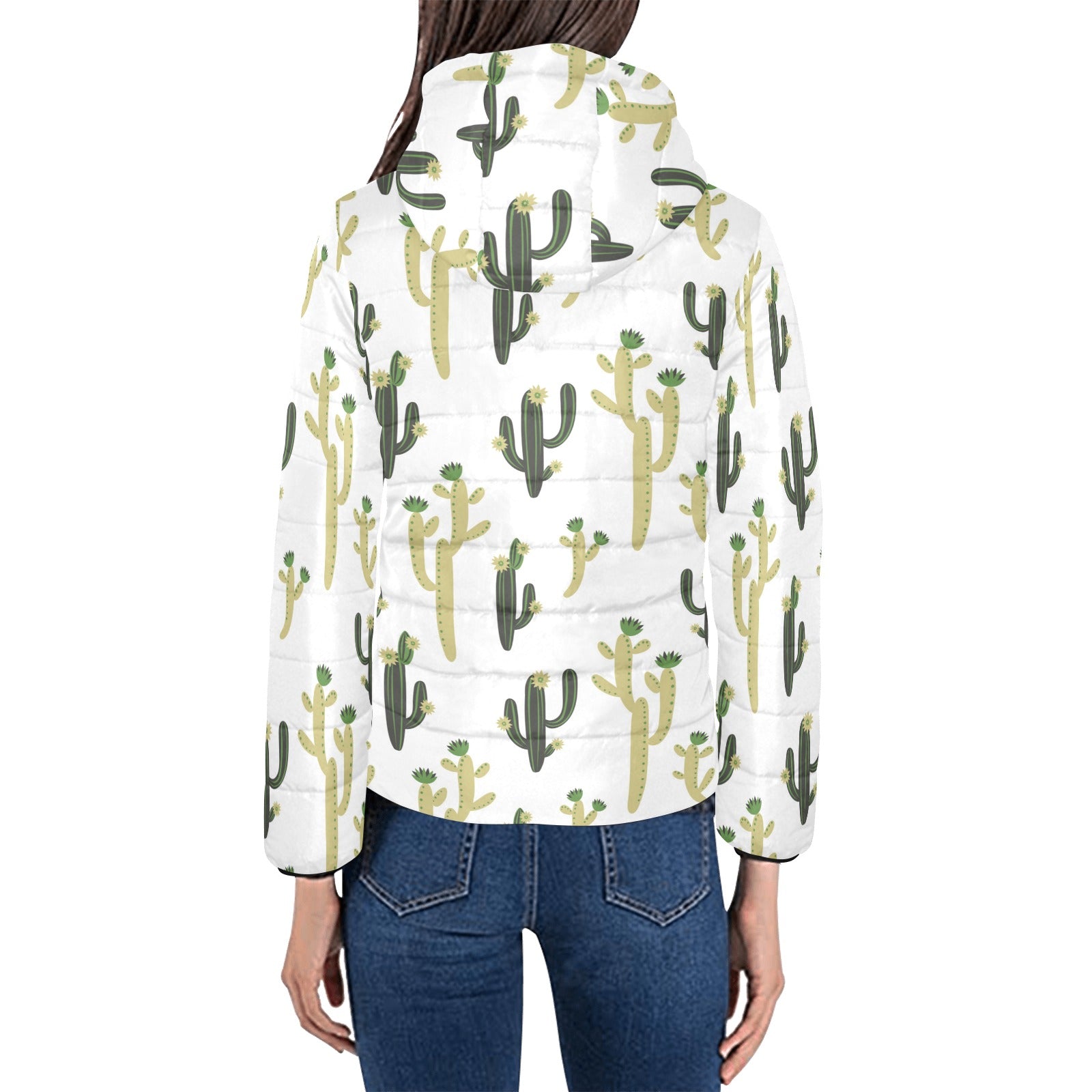 Cute cactus pattern Women's Padded Hooded Jacket