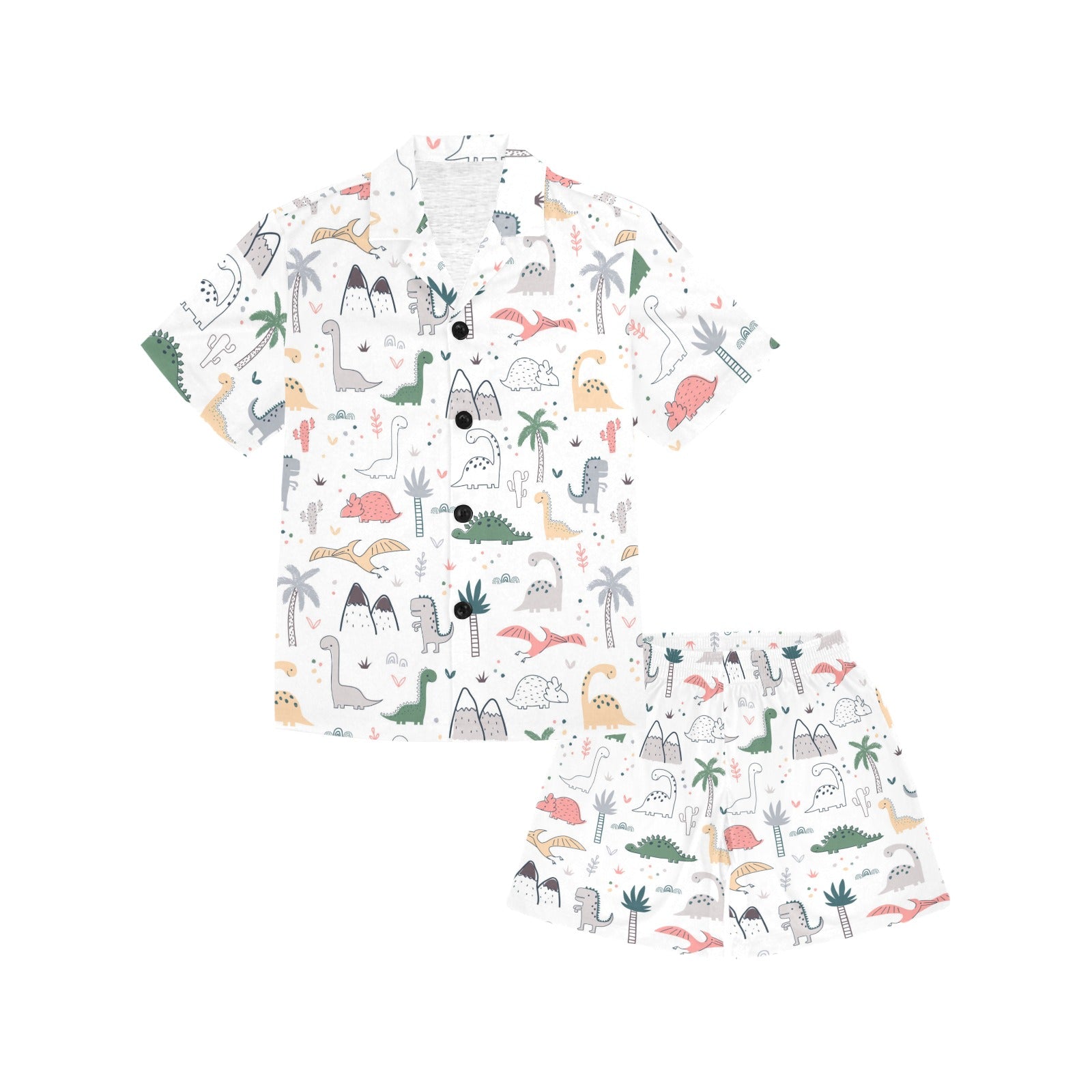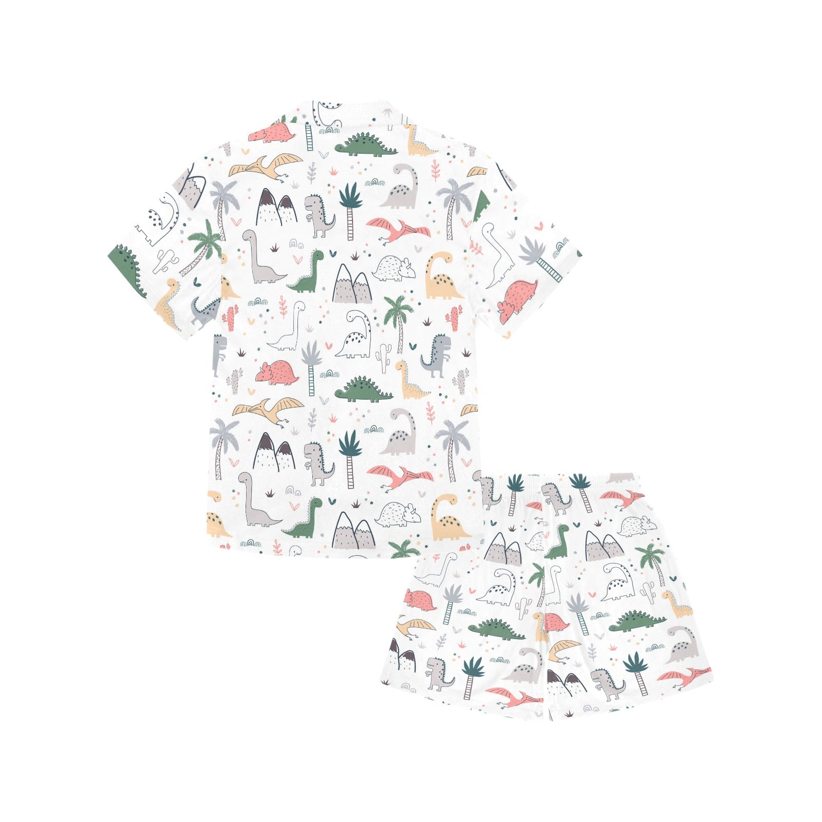 Cute cartoon dinosaurs tree pattern Kids' Boys' Girls' V-Neck Short Pajama Set