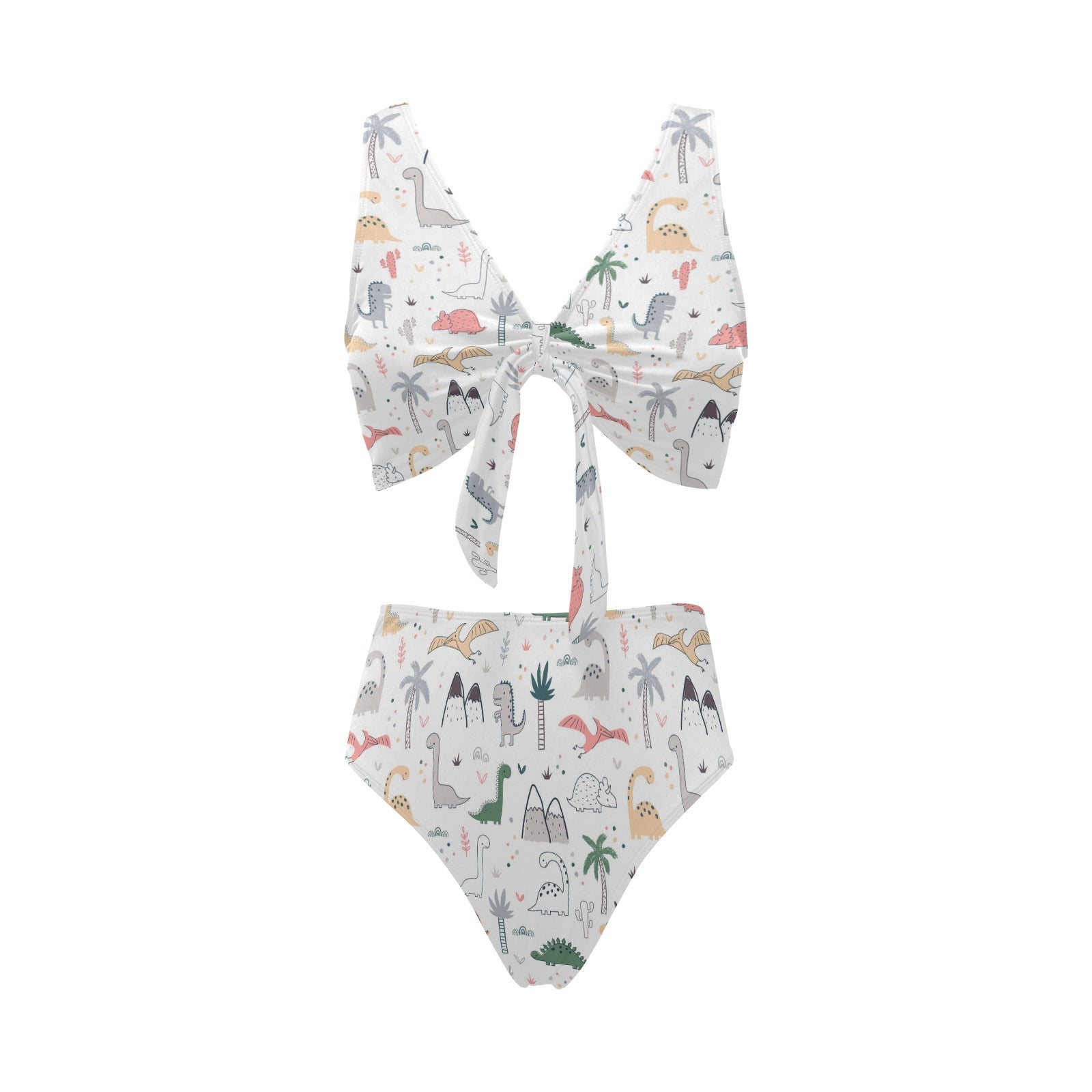 Cute cartoon dinosaurs tree pattern Chest Bowknot High Waisted Bikini Swimsuit