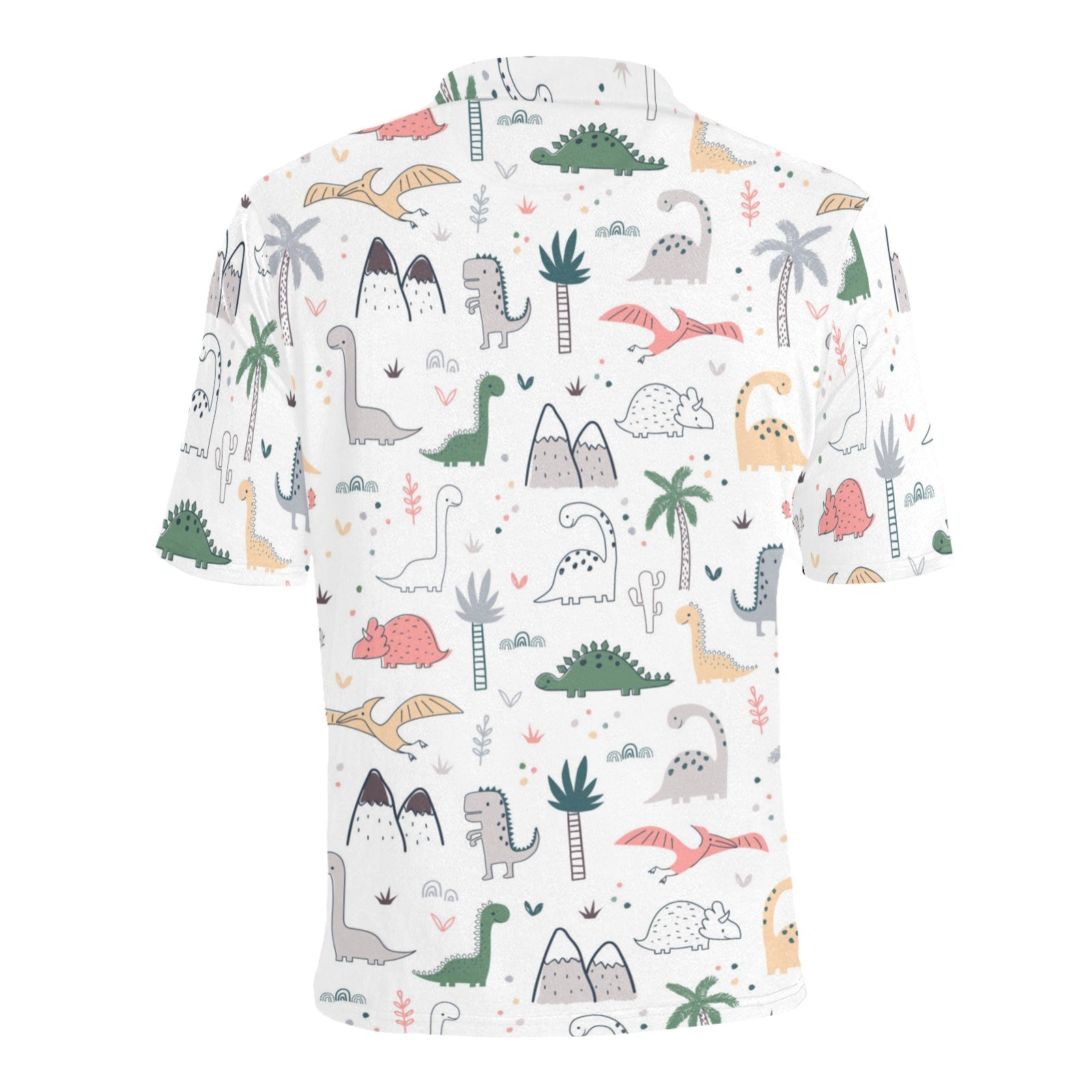 Cute cartoon dinosaurs tree pattern Men's All Over Print Polo Shirt