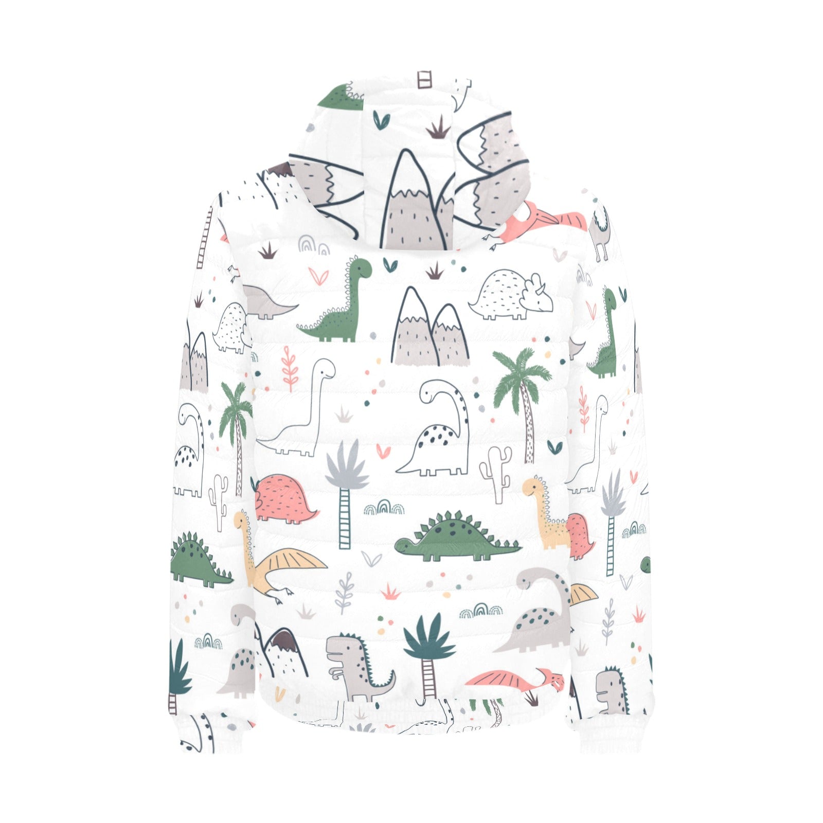 Cute cartoon dinosaurs tree pattern Men's Padded Hooded Jacket