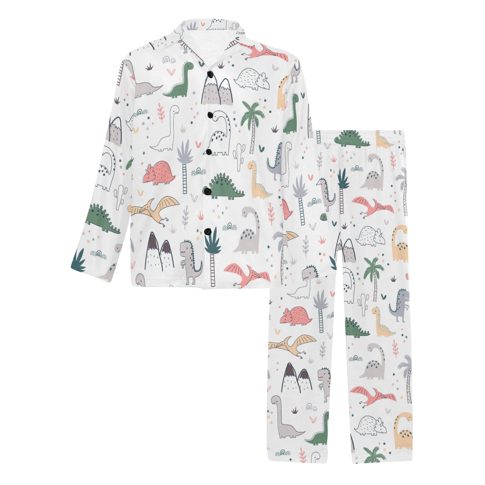 Cute cartoon dinosaurs tree pattern Men's Long Pajama Set