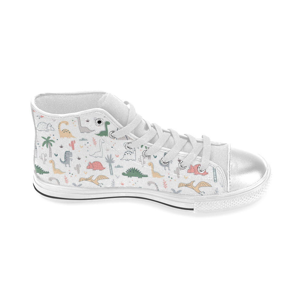 Cute cartoon dinosaurs tree pattern Women's High Top Canvas Shoes White