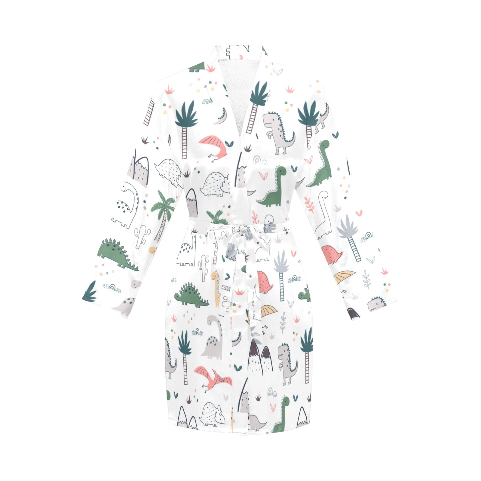 Cute cartoon dinosaurs tree pattern Women's Long Sleeve Belted Night Robe