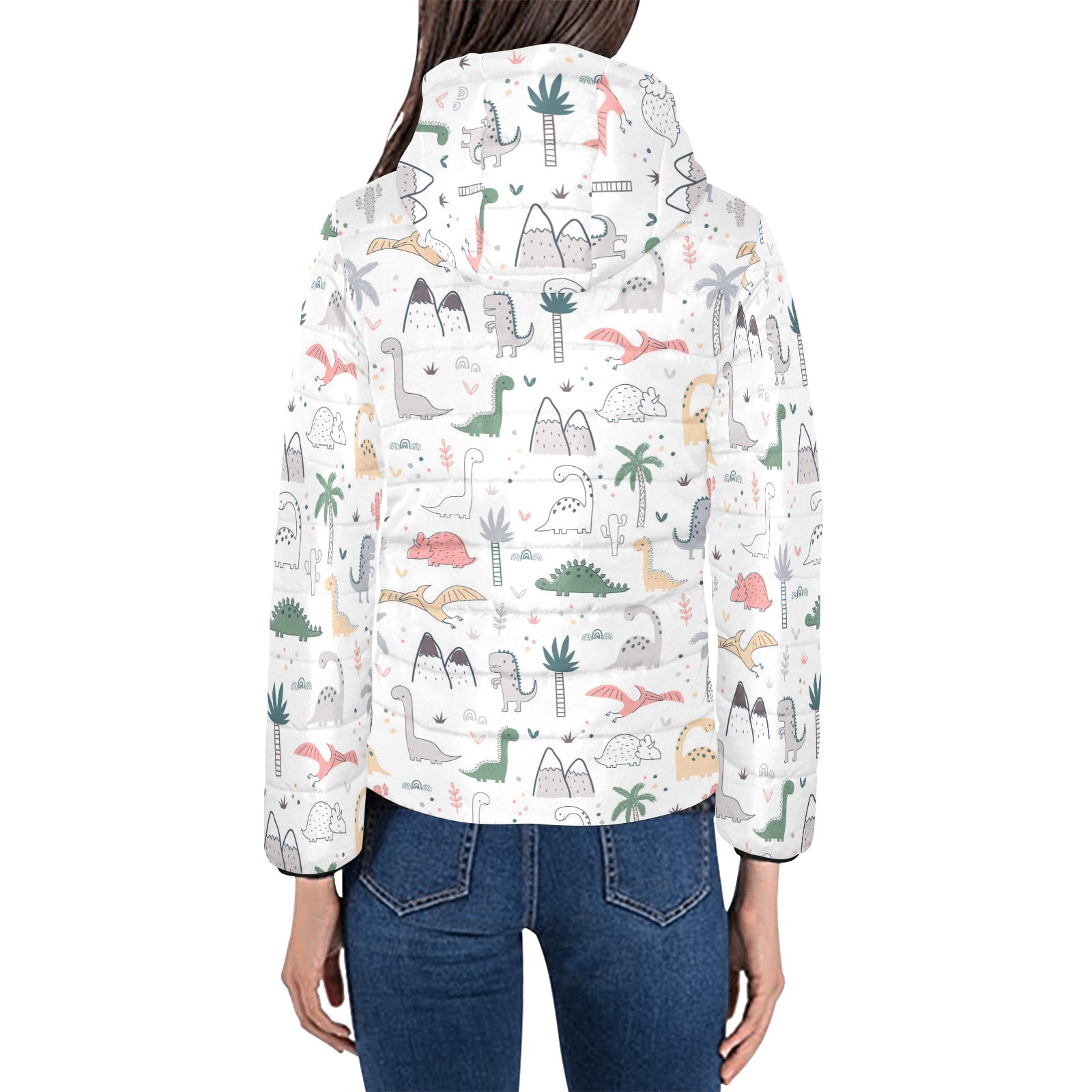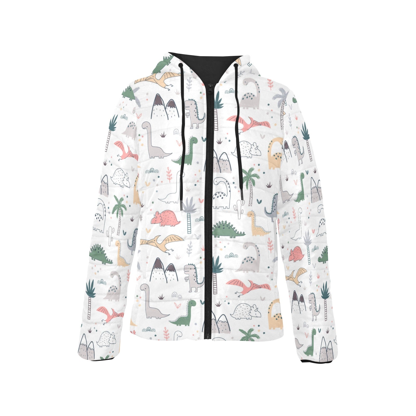 Cute cartoon dinosaurs tree pattern Women's Padded Hooded Jacket
