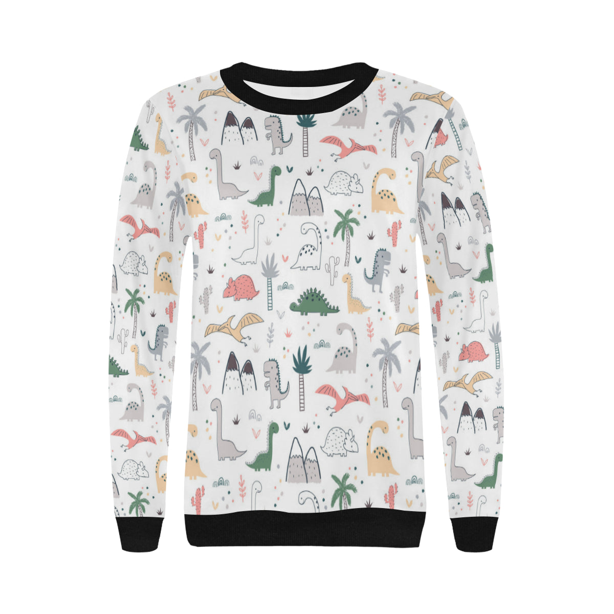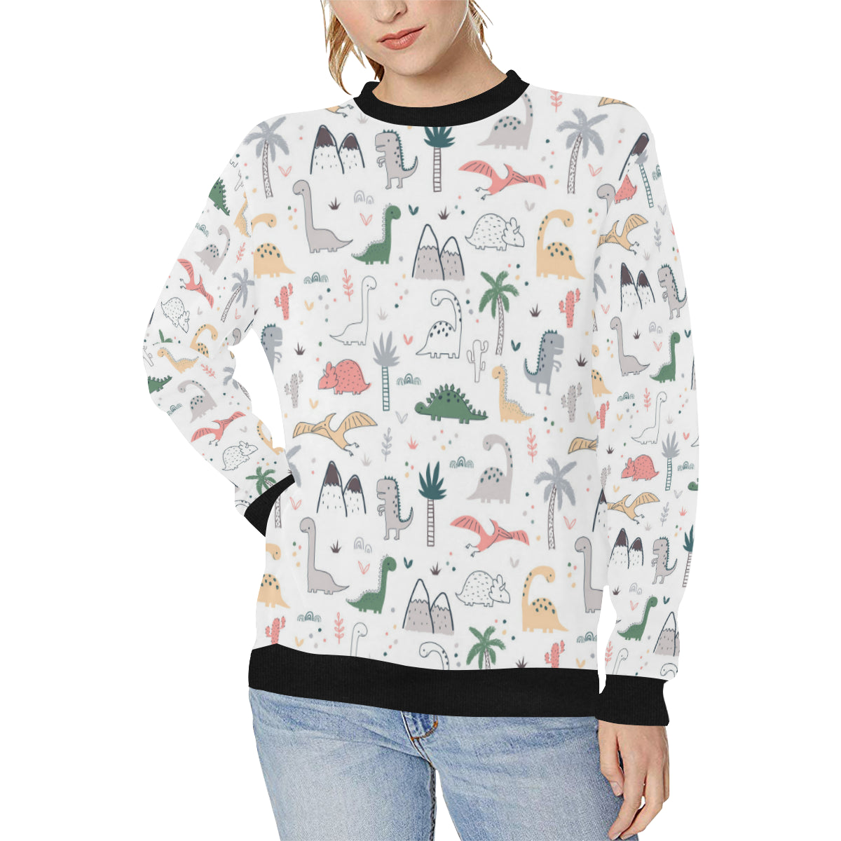 Cute cartoon dinosaurs tree pattern Women's Crew Neck Sweatshirt is a uniqued design and limited item. It made to order, hand printed, and sewn with love in our factory.