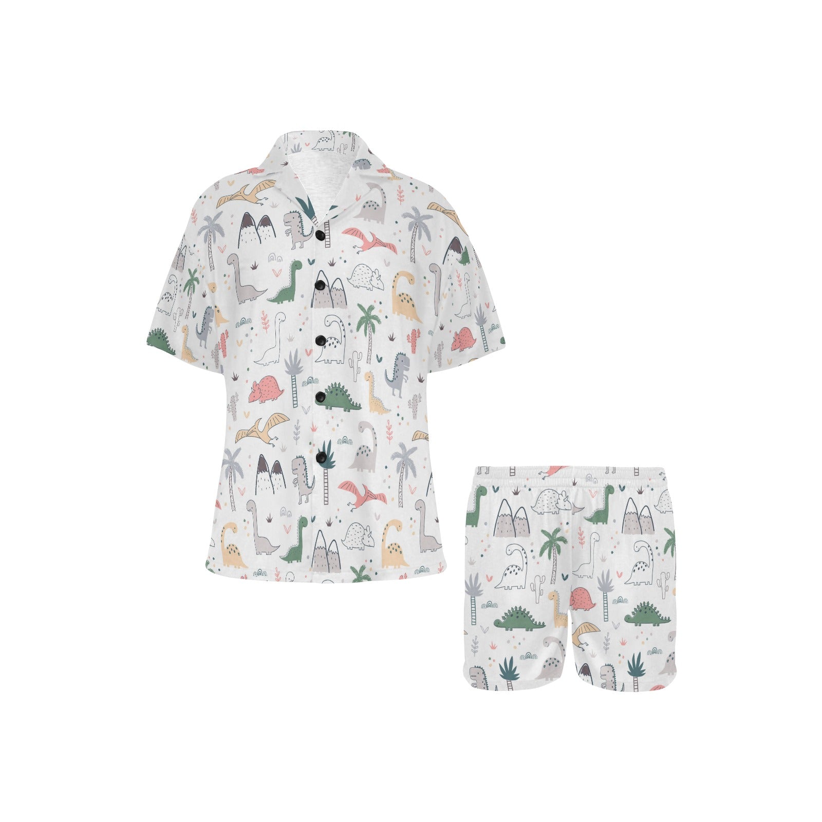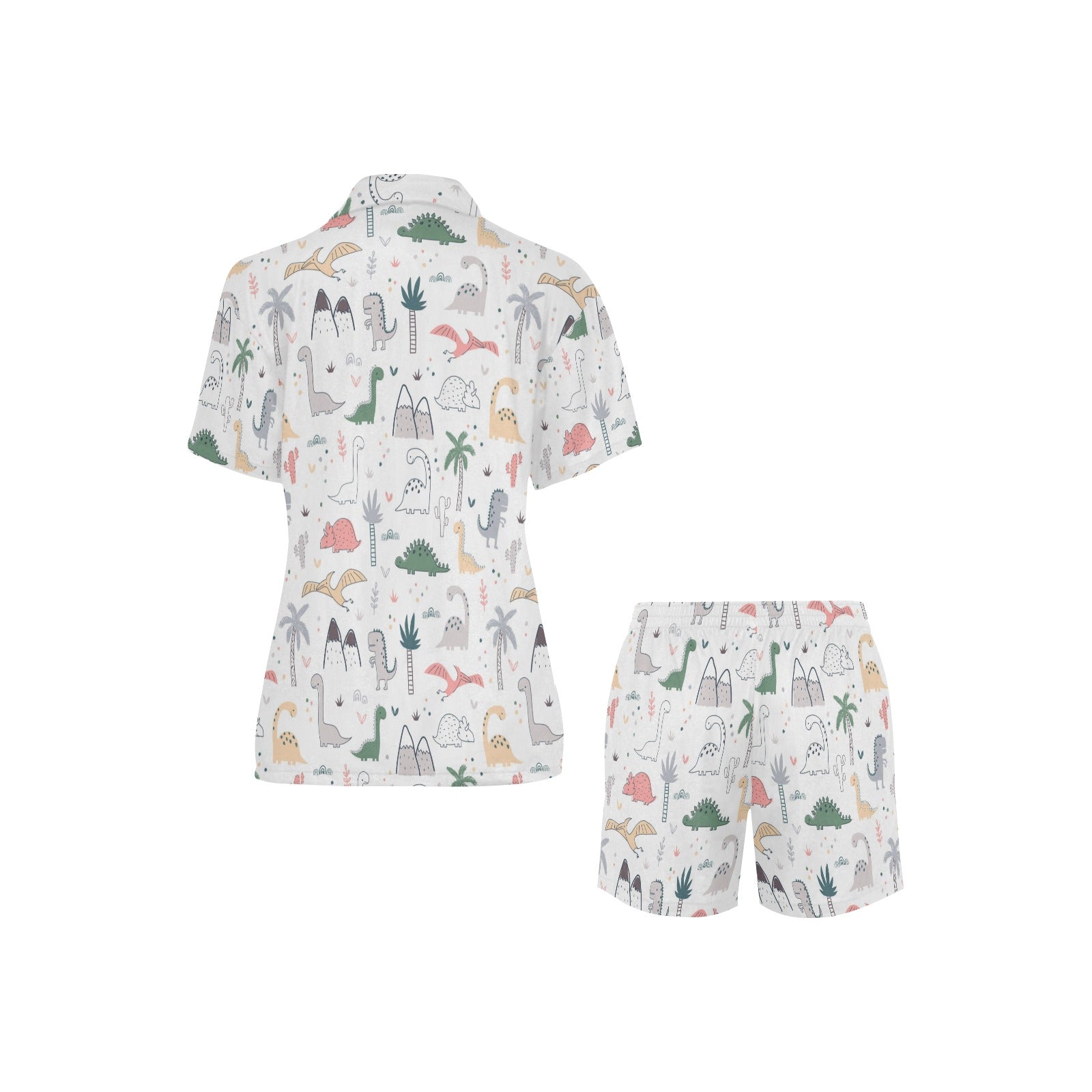 Cute cartoon dinosaurs tree pattern Women's V-Neck Short Pajama Set