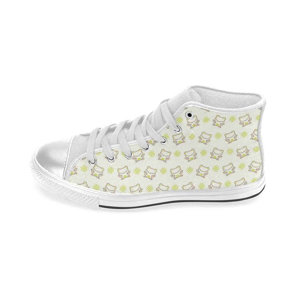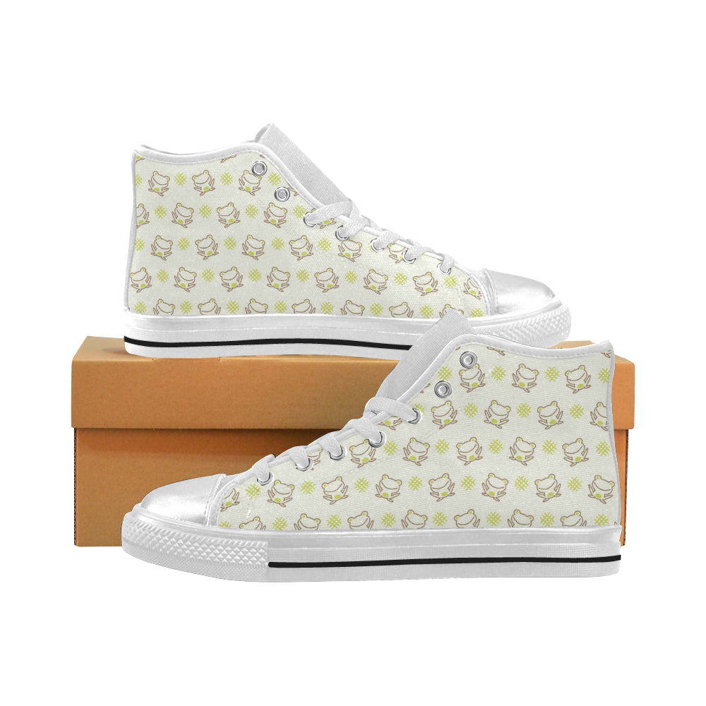 Cute cartoon frog baby pattern Women's High Top Canvas Shoes White