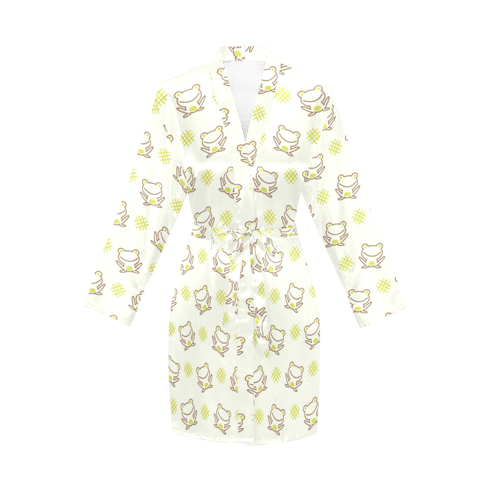 Cute cartoon frog baby pattern Women's Long Sleeve Belted Night Robe