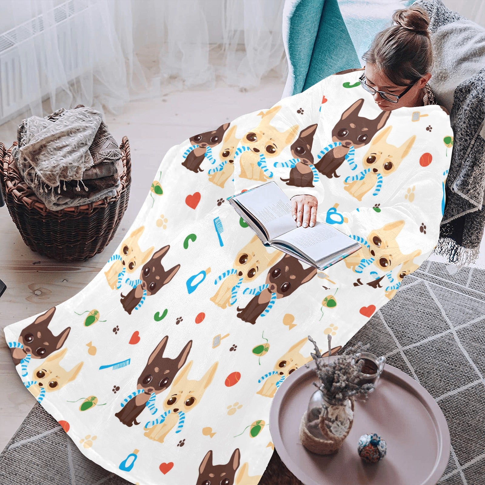 Cute Chihuahua dog pattern Blanket Robe with Sleeves