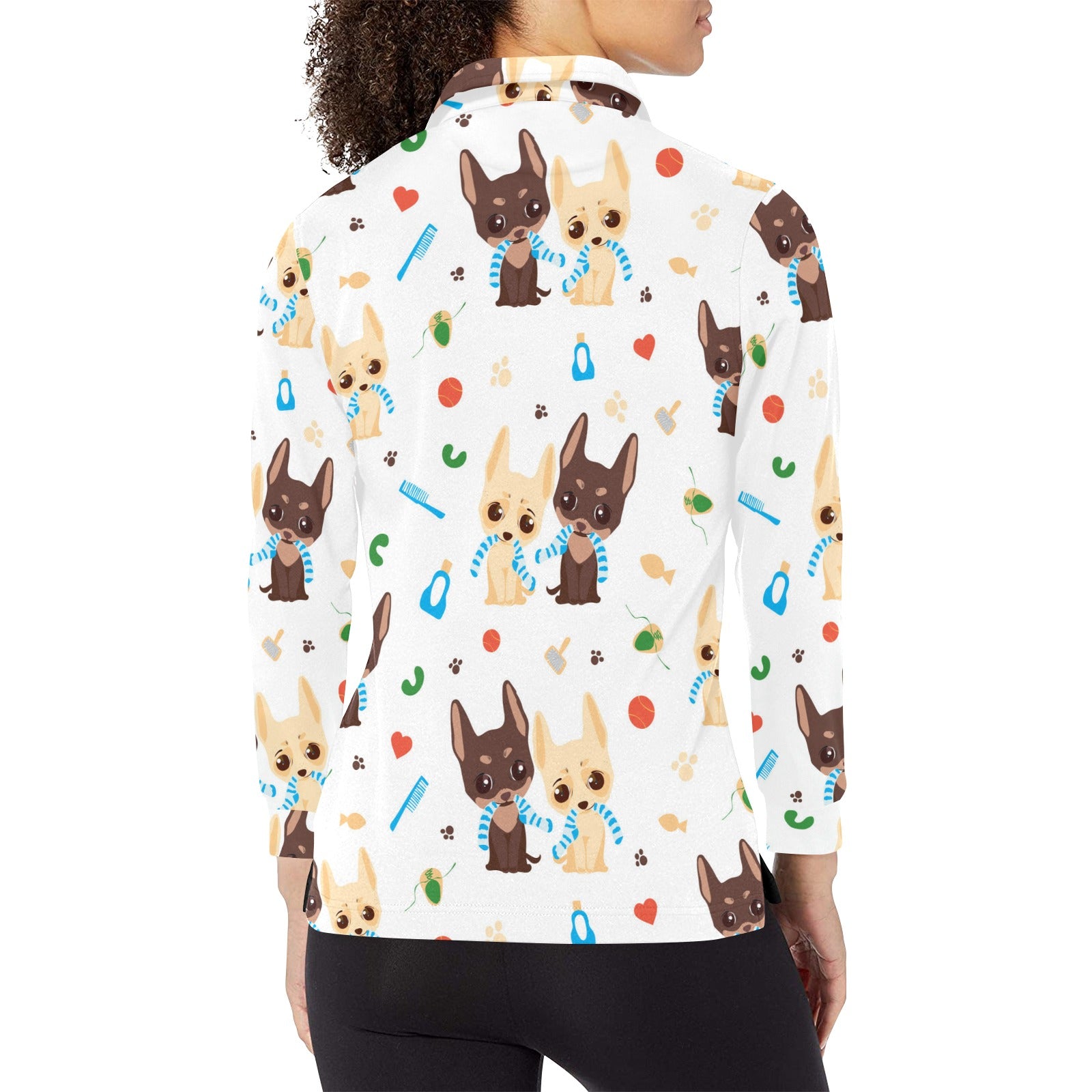 Cute Chihuahua dog pattern Women's Long Sleeve Polo Shirt