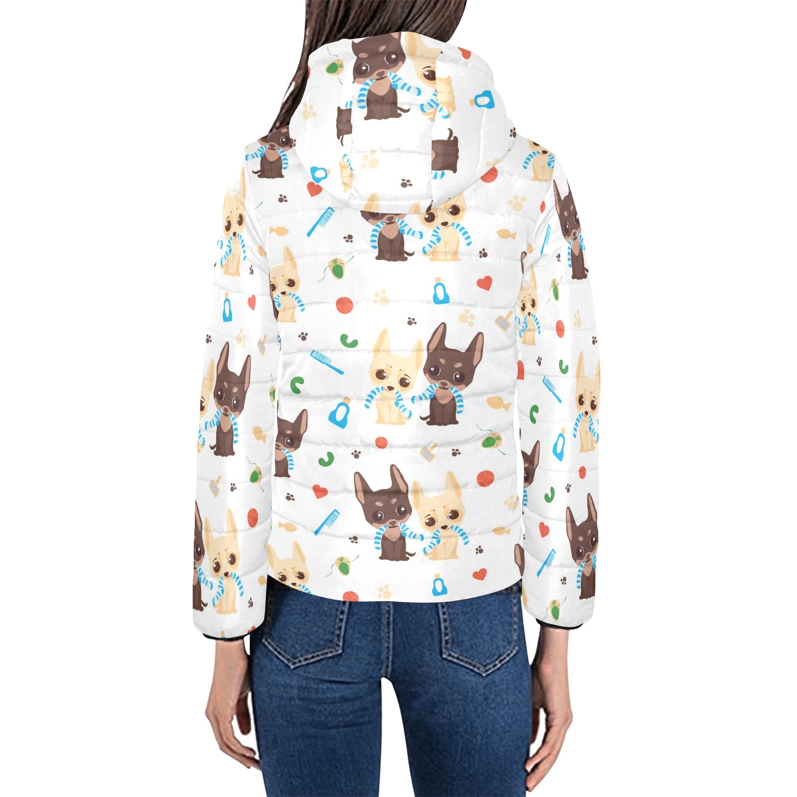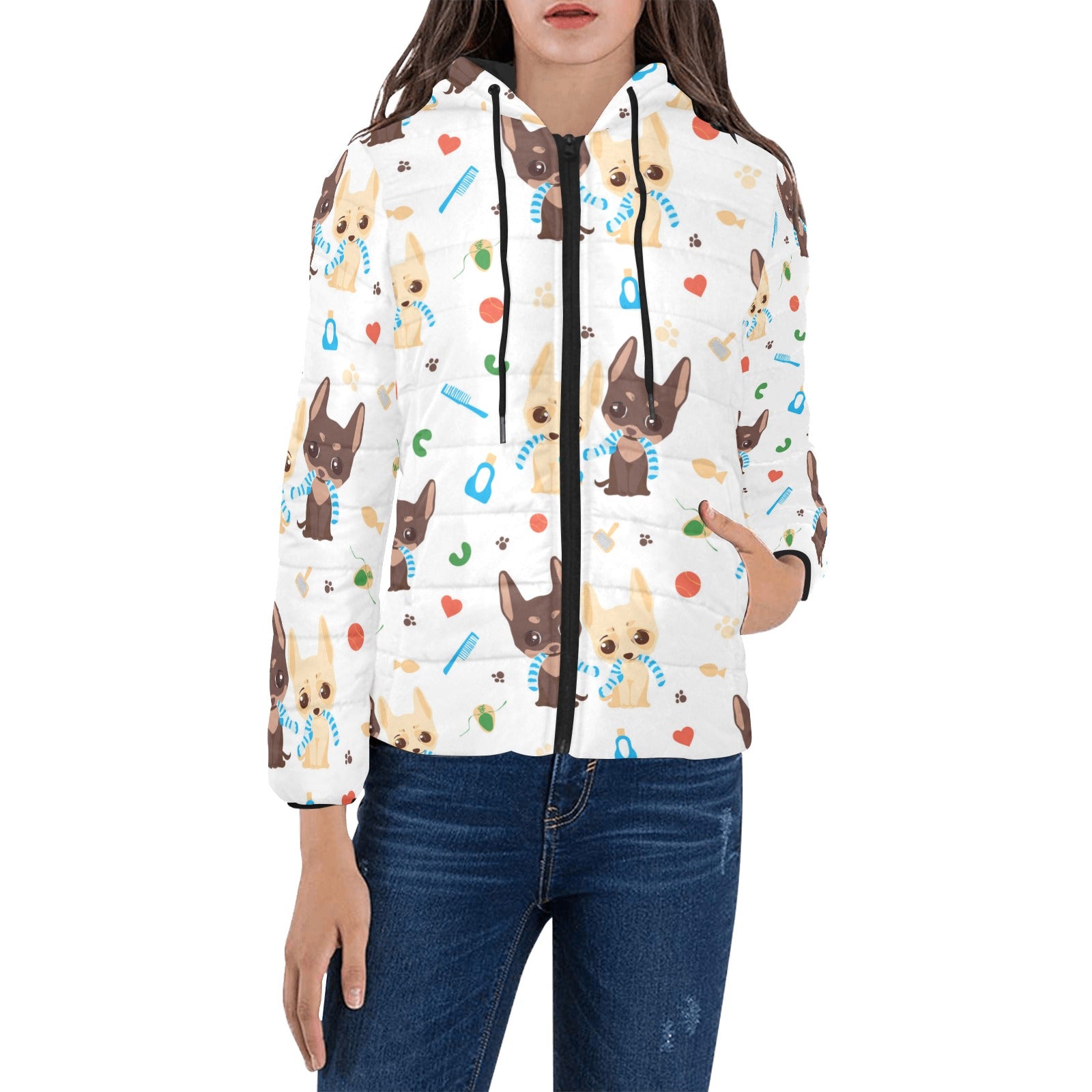 Cute Chihuahua dog pattern Women's Padded Hooded Jacket