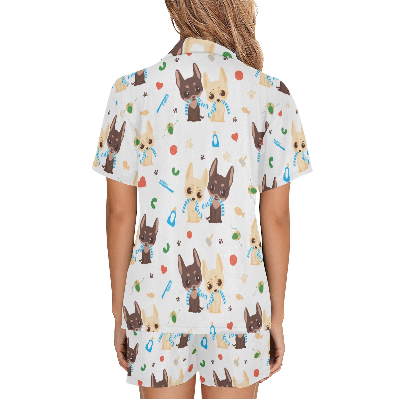 Cute Chihuahua dog pattern Women's V-Neck Short Pajama Set