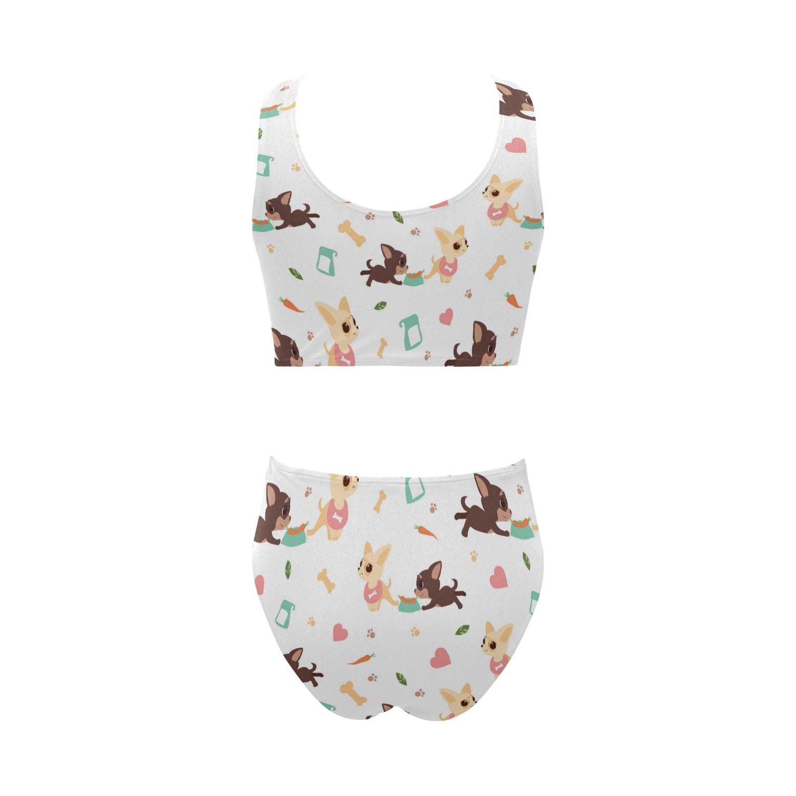 Cute Chihuahua puppie pattern Chest Bowknot High Waisted Bikini Swimsuit
