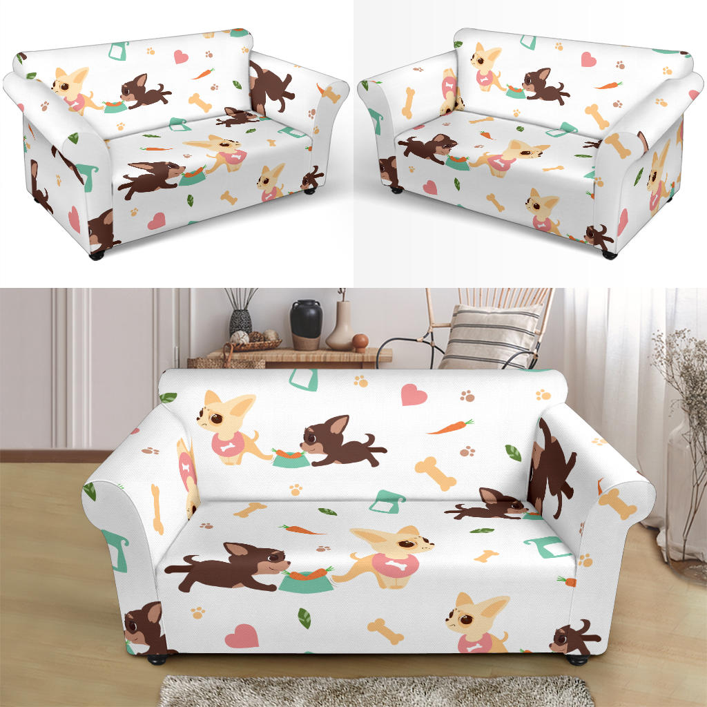 Cute Chihuahua Puppie Pattern Loveseat Couch Slipcover
