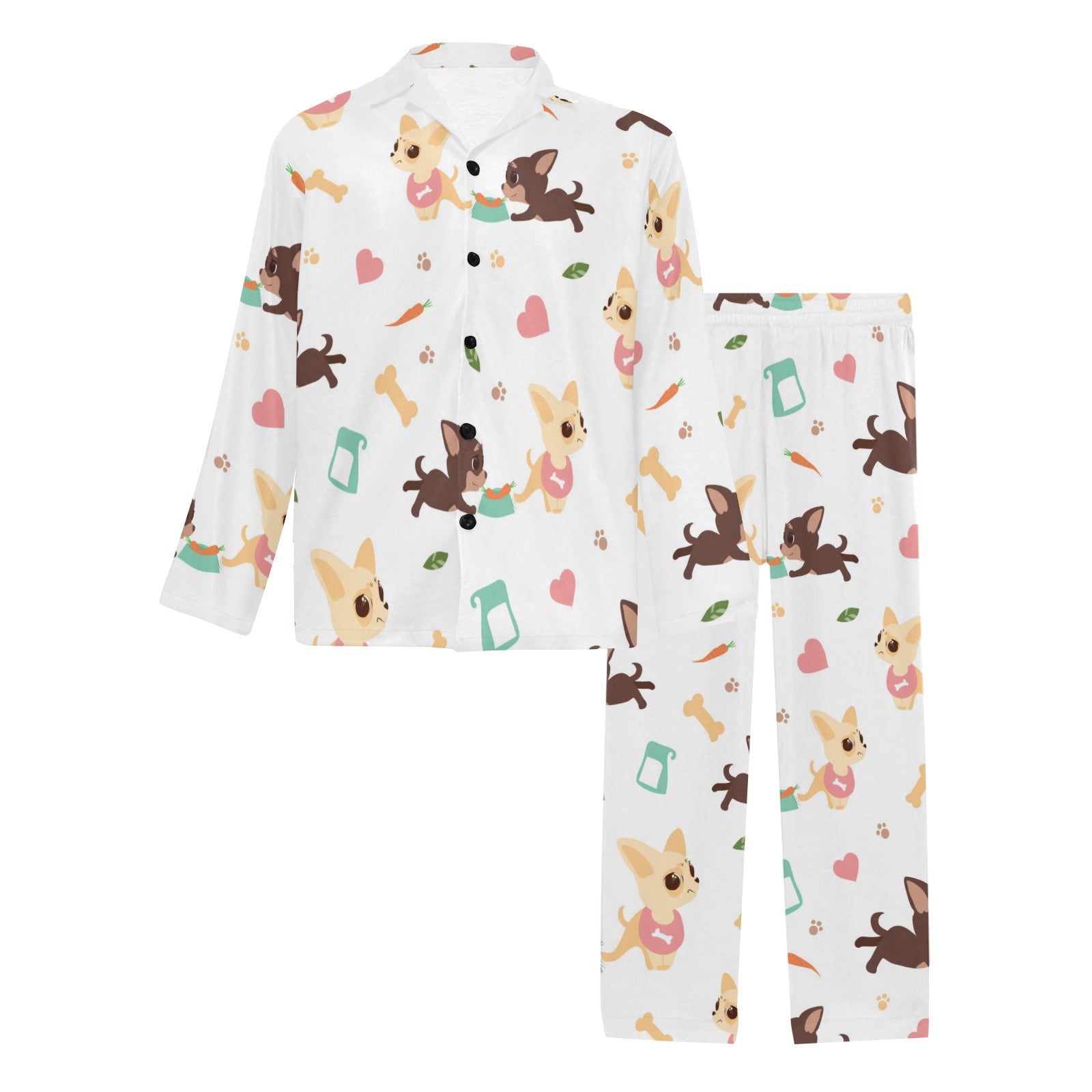 Cute Chihuahua puppie pattern Men's Long Pajama Set