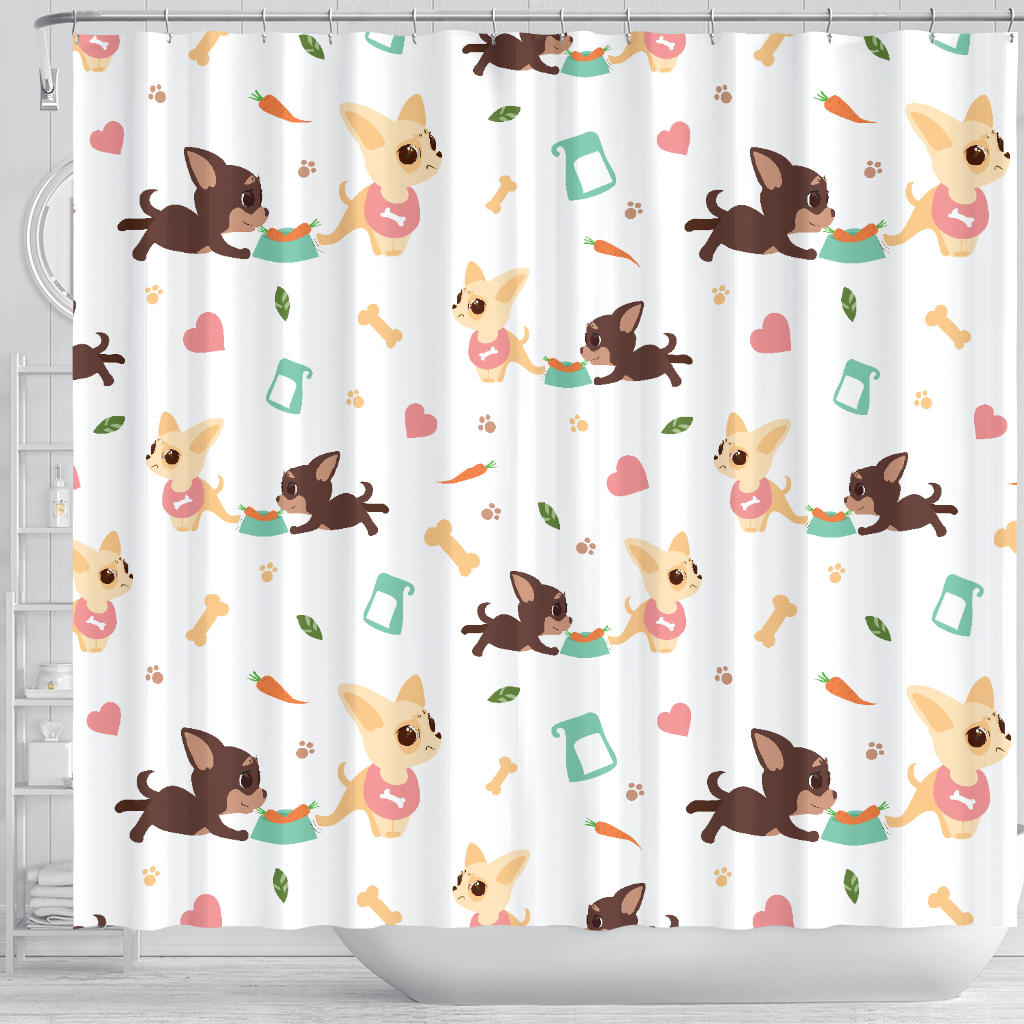 Cute Chihuahua Puppie Pattern Shower Curtain Fulfilled In US