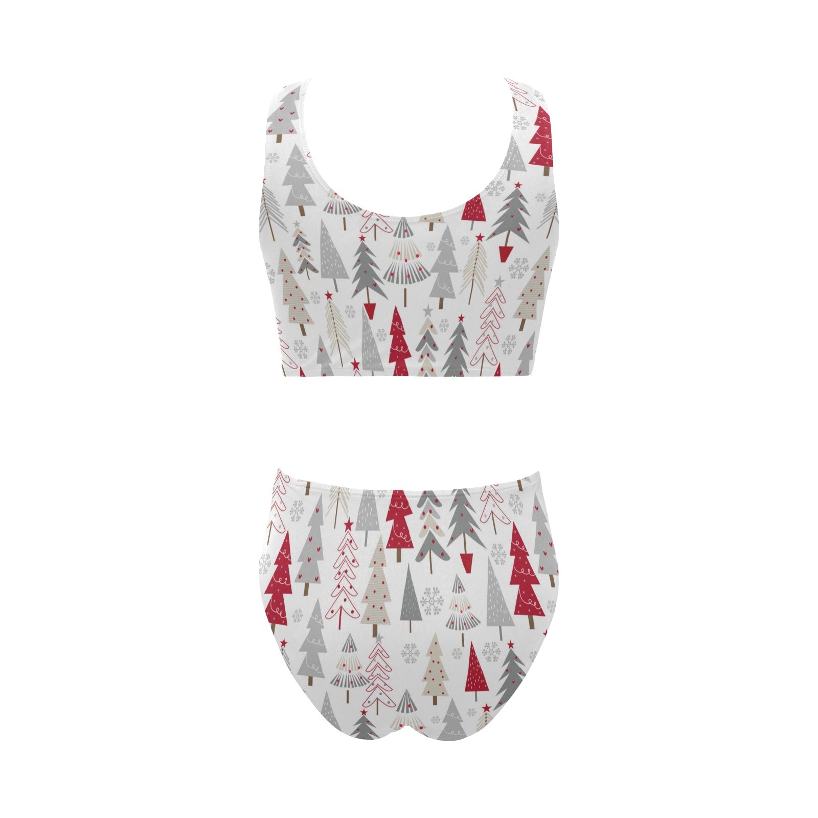 Cute Christmas tree pattern Chest Bowknot High Waisted Bikini Swimsuit