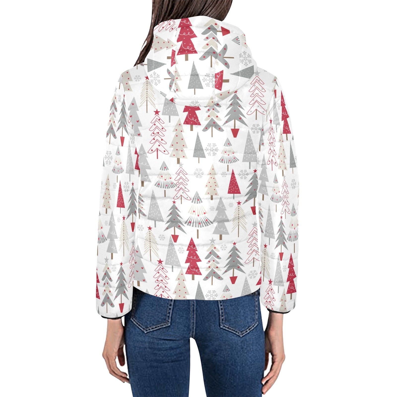 Cute Christmas tree pattern Women's Padded Hooded Jacket