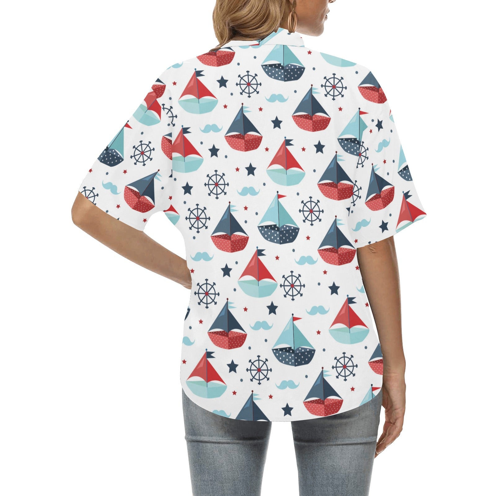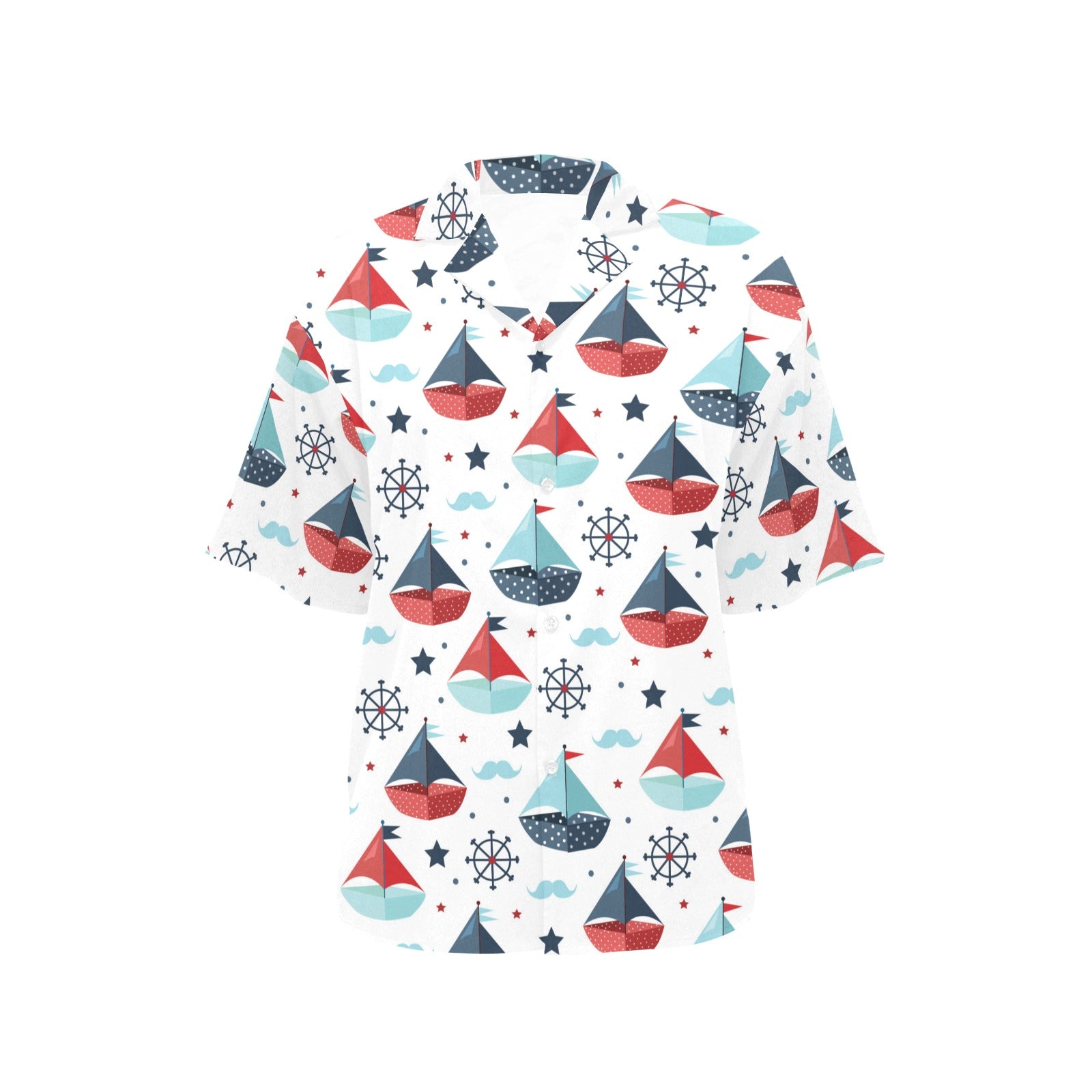 Cute color paper sailboat pattern Women's All Over Print Hawaiian Shirt
