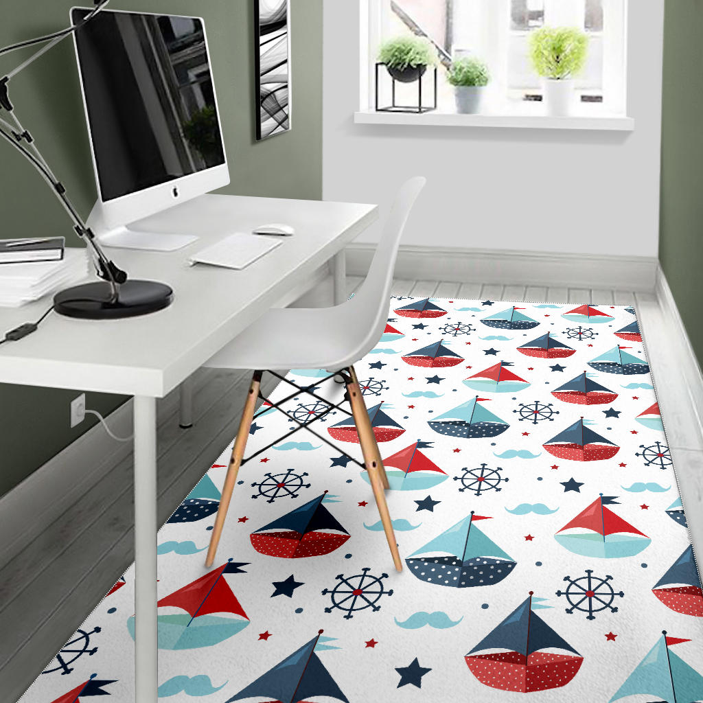 Cute color paper sailboat pattern Area Rug is a uniqued design and limited item. It made to order, hand printed, and sewn with love in our factory.