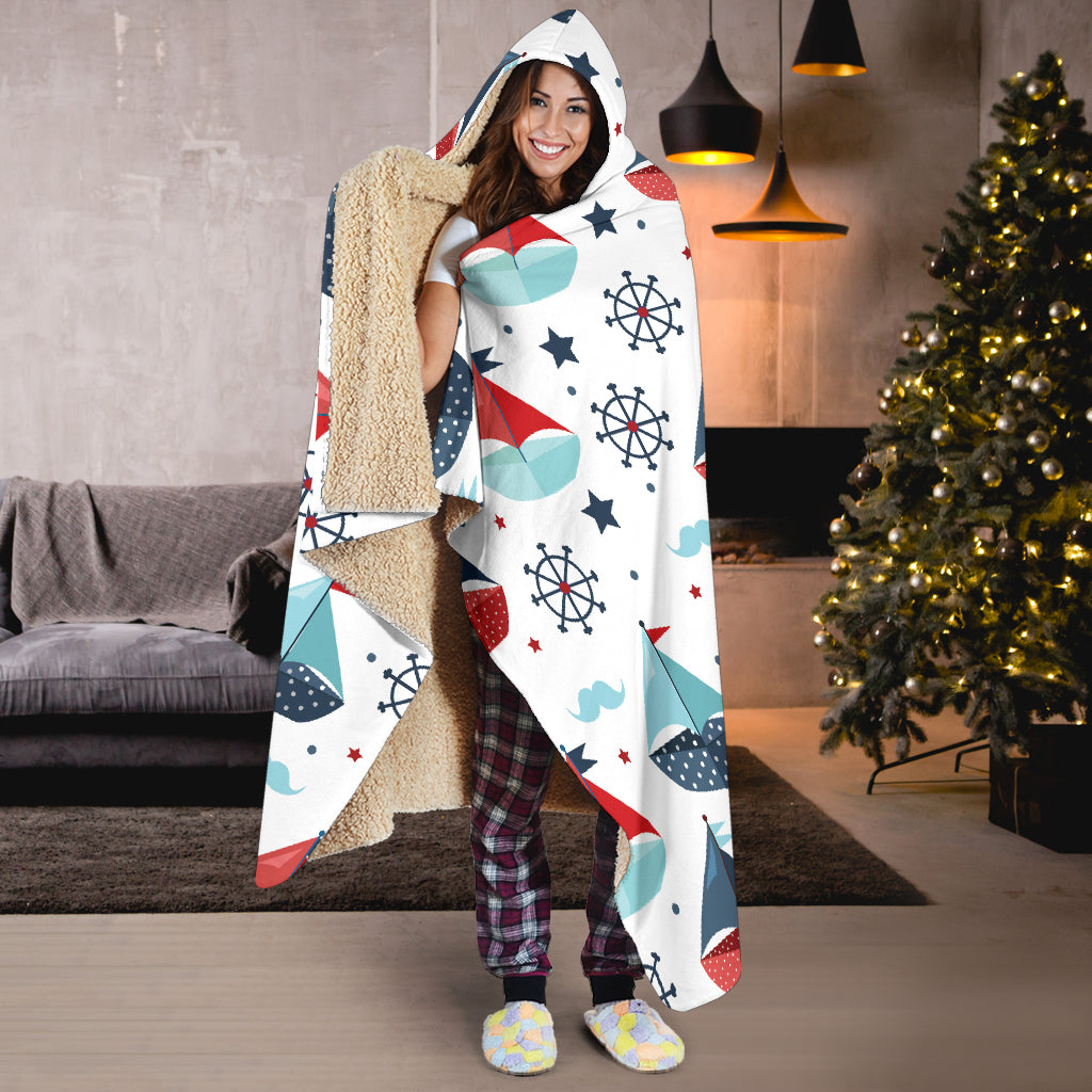 Cute Color Paper Sailboat Pattern Hooded Blanket