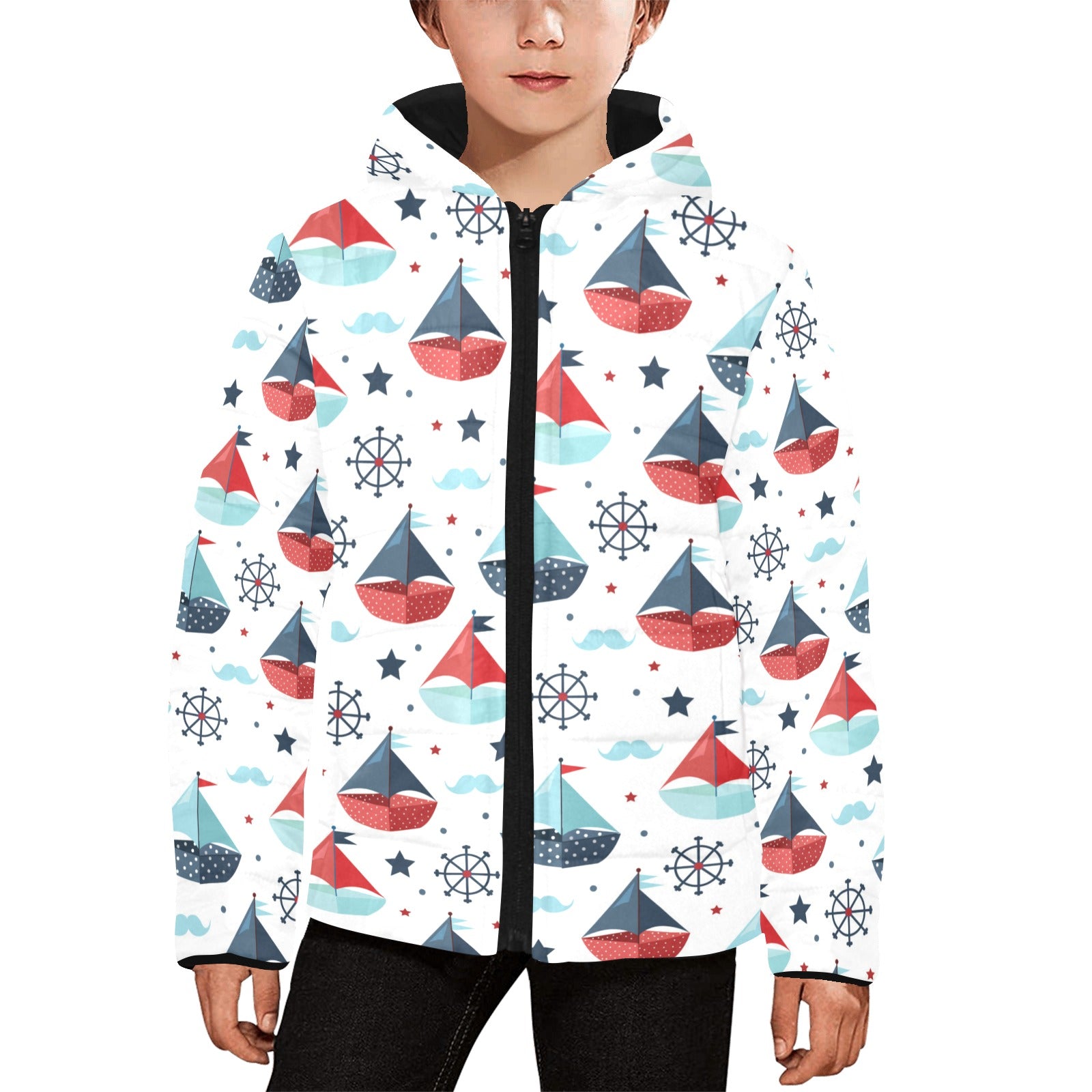 Cute color paper sailboat pattern Kids' Boys' Girls' Padded Hooded Jacket