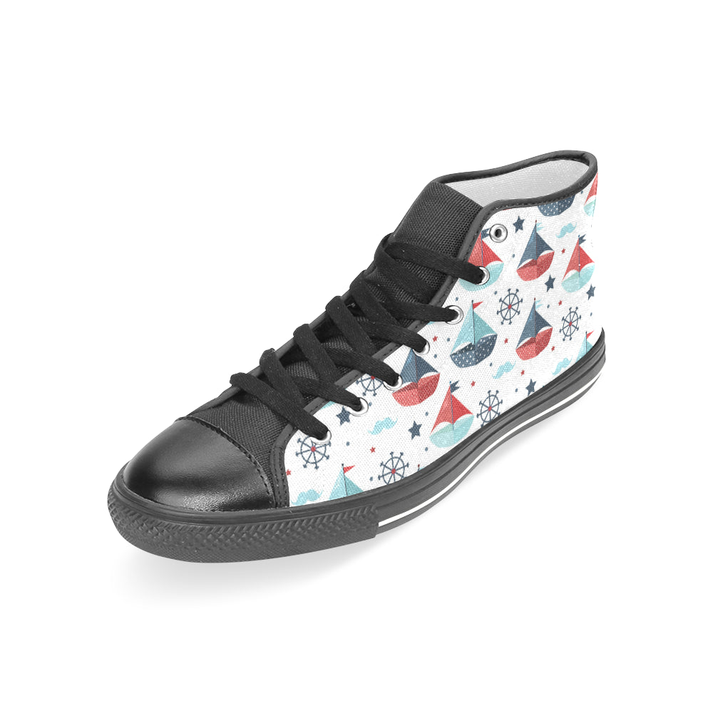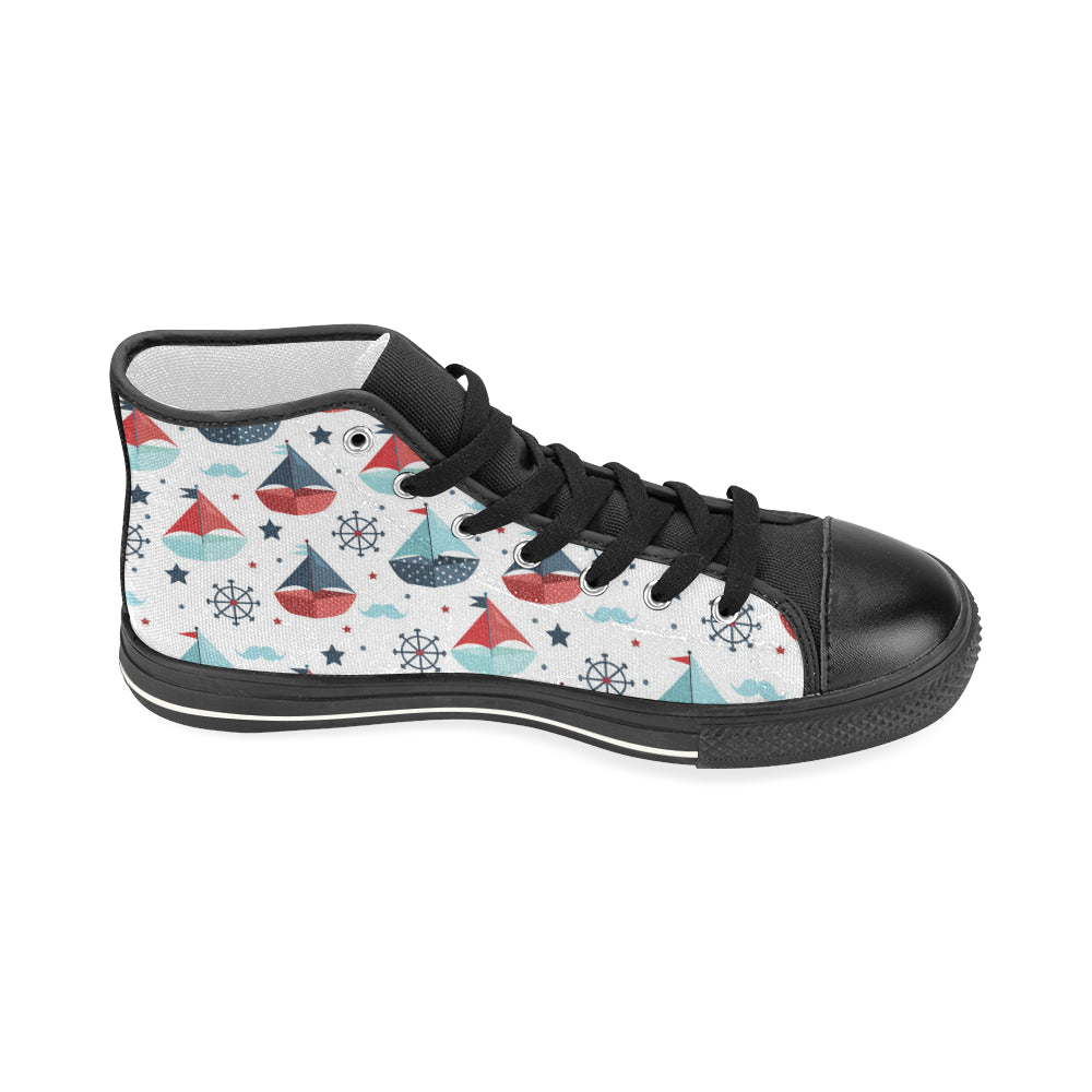 Cute color paper sailboat pattern Women's High Top Canvas Shoes Black