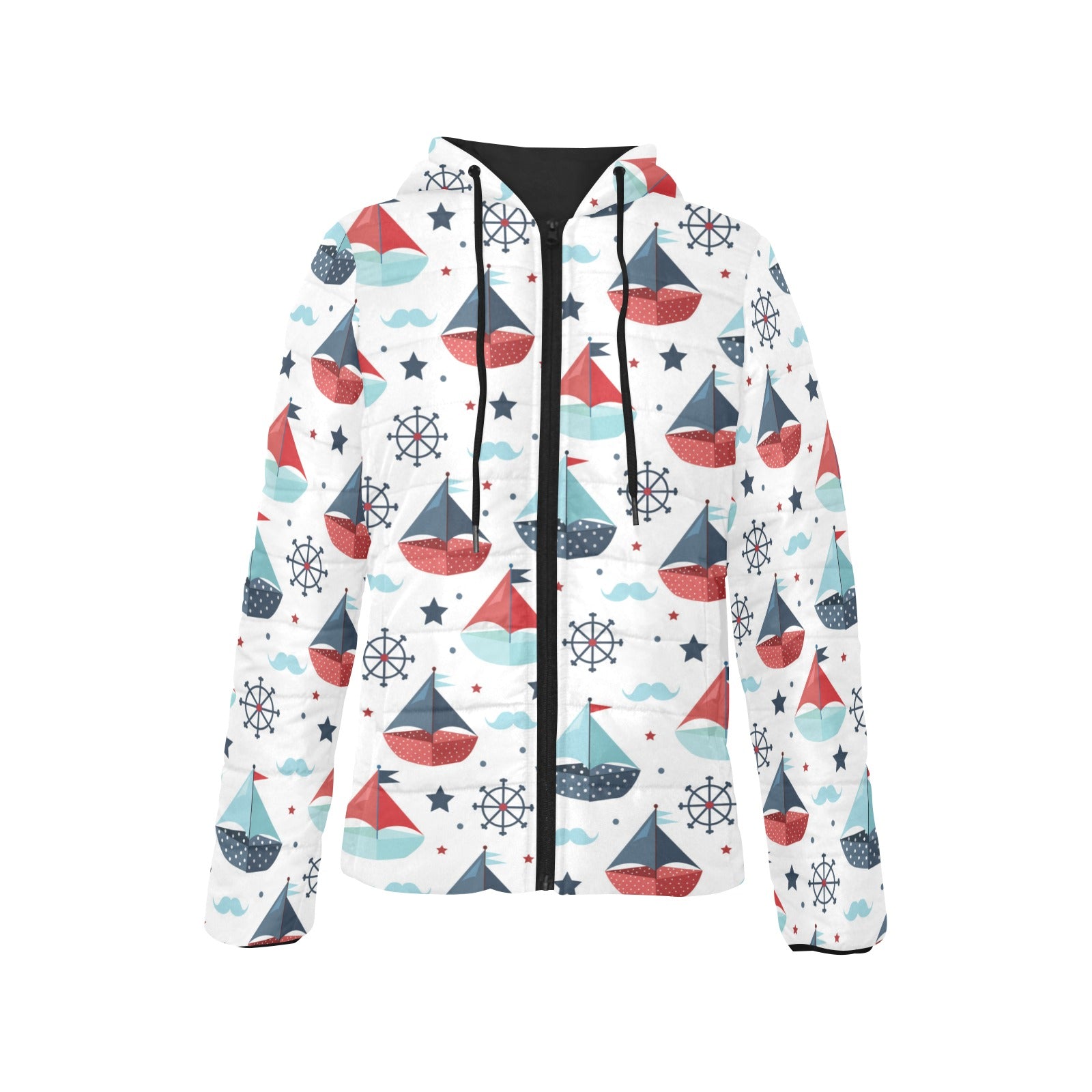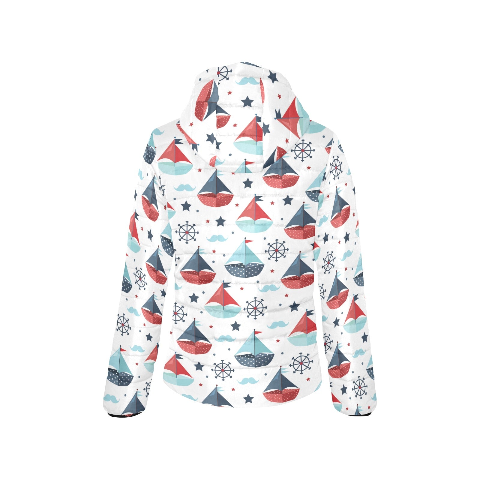 Cute color paper sailboat pattern Women's Padded Hooded Jacket