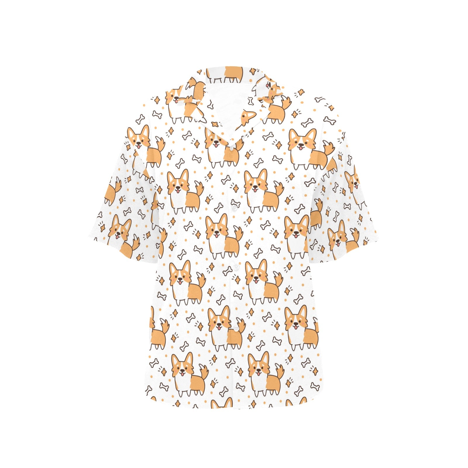 Cute corgi heart star bone pattern Women's All Over Print Hawaiian Shirt