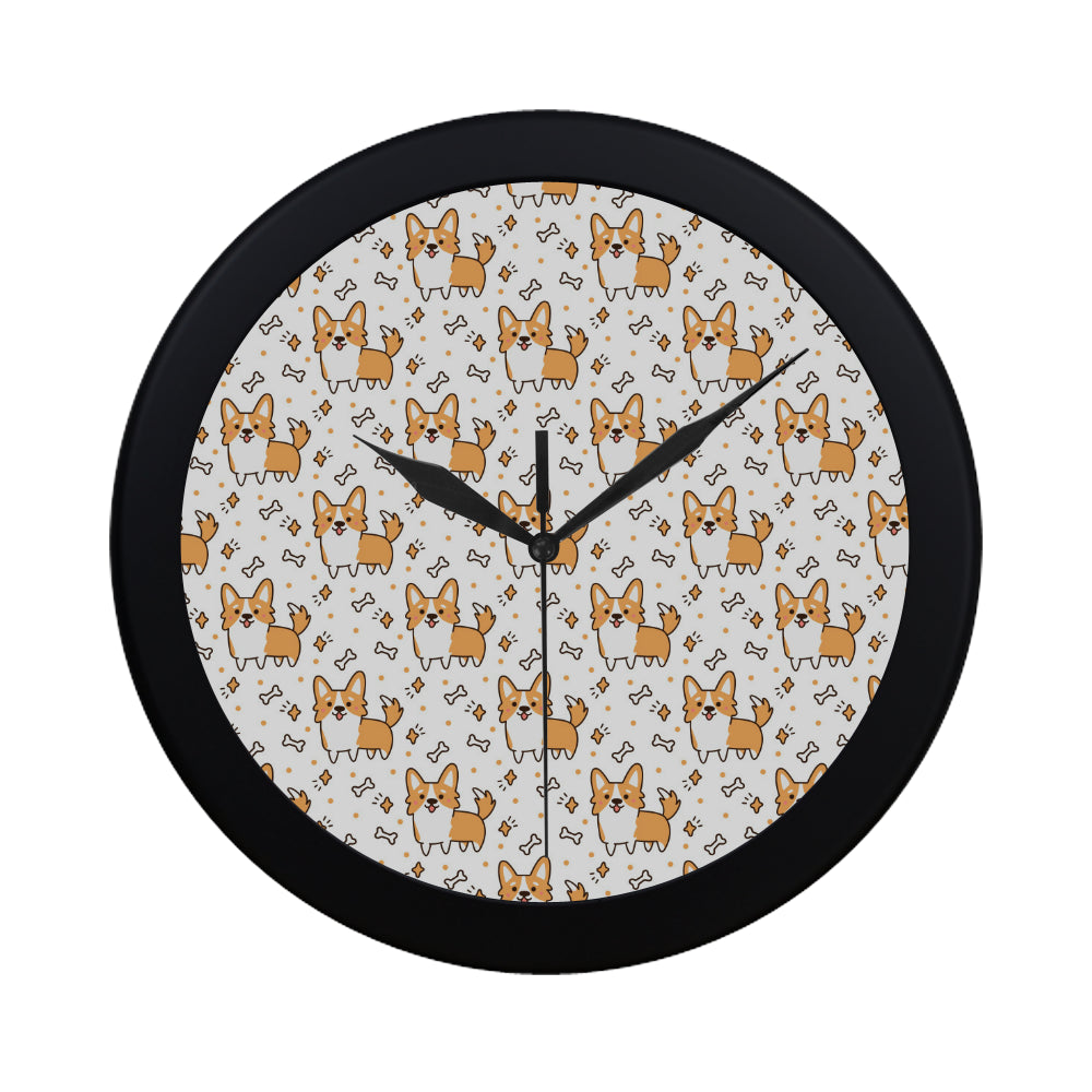 Cute corgi heart star bone pattern Elegant Black Wall Clock