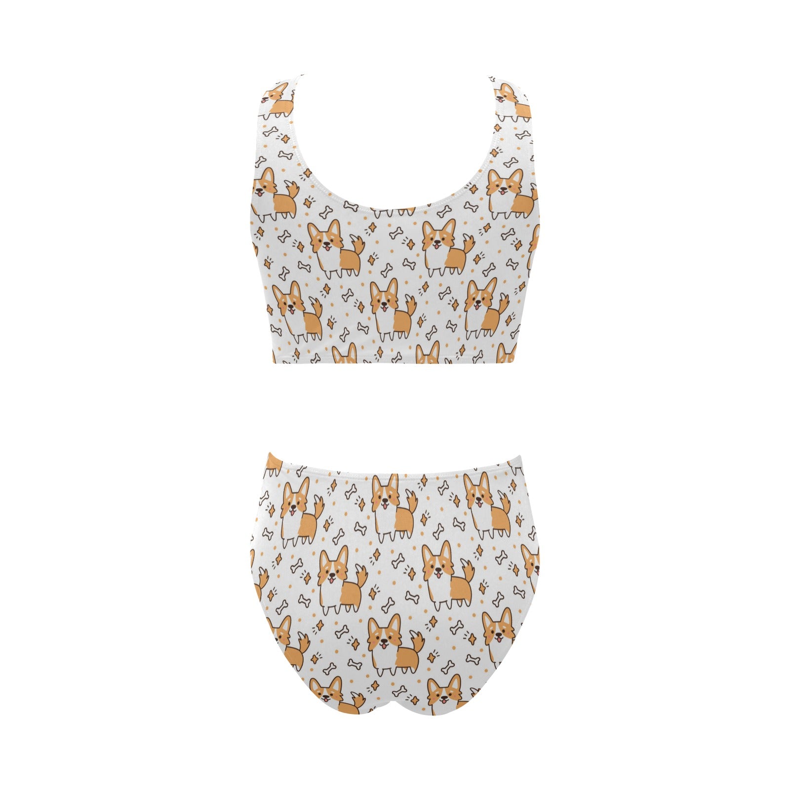 Cute corgi heart star bone pattern Chest Bowknot High Waisted Bikini Swimsuit