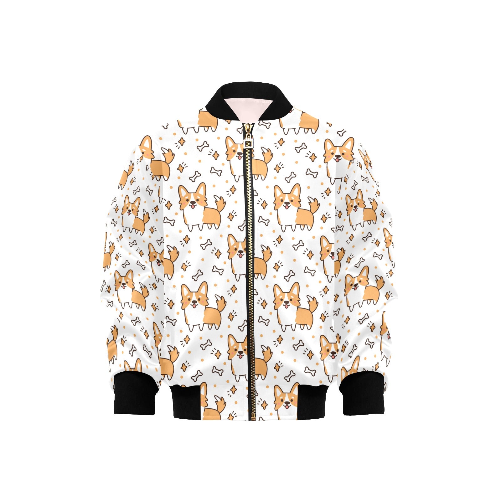 Cute corgi heart star bone pattern Kids' Boys' Girls' Bomber Jacket