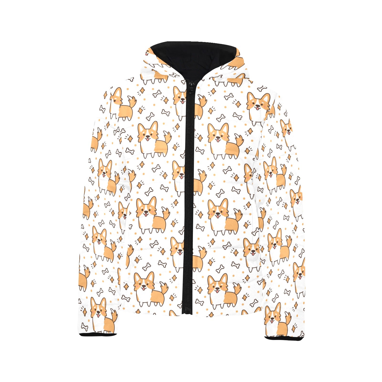 Cute corgi heart star bone pattern Kids' Boys' Girls' Padded Hooded Jacket